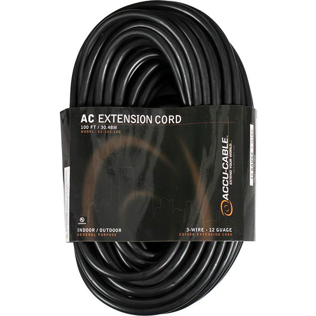 Accu-Cable 3-Wire Edison AC Extension Cord (12 AWG, Black, 100')