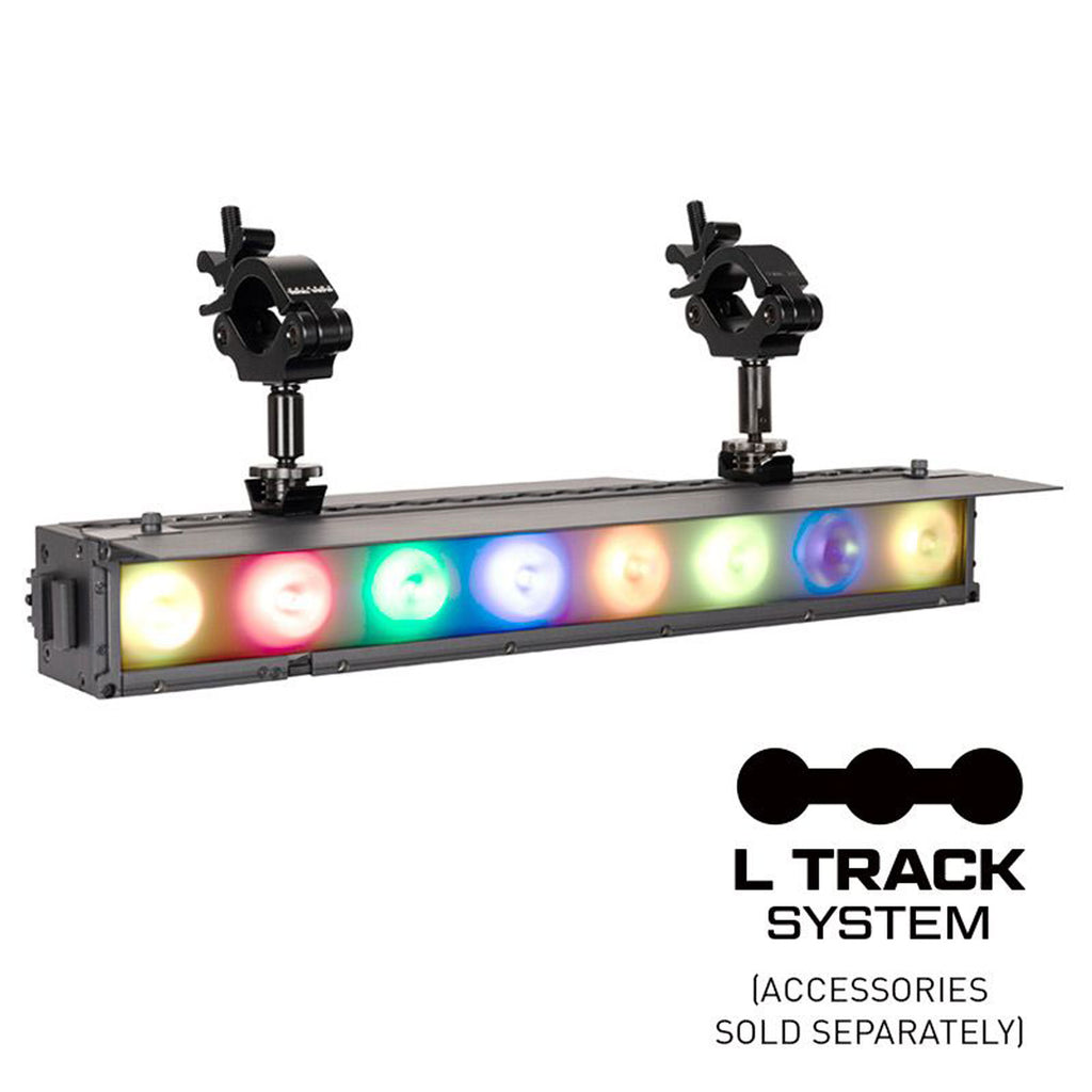 Designed for adaptability, the IP65-Rated housing, OLED digital display, L Track system, and adjustable feet make installation and customization a breeze. Additional, up to four ElectraPix Bar 8 fixtures may be mounted vertically to the VFB1 floor base (sold separately). The fixture's control options include DMX512, Aria X2 Wireless DMX, Bluetooth, RDM compatibility, and an included UCIR24 wireless remote.
