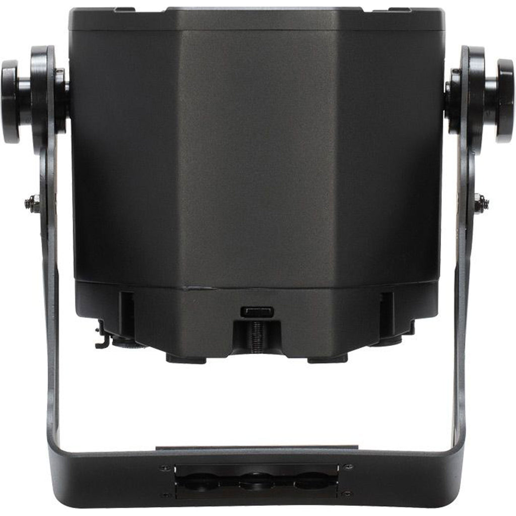 Battery-powered PAR-style IP-65-rated LED Lighting Fixture with 7 Hex-color LEDs, Electronic Dimming and Strobing, Wall Power, Bluetooth, and DMX Control