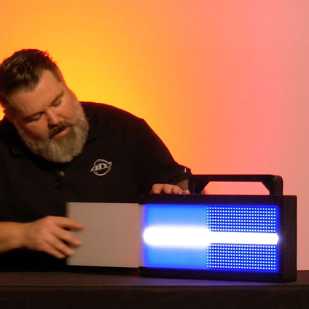 The Jolt Panel FXIP is an innovative multi-use strobe / wash / eye candy fixture. It is equipped with 800 x 0.5-Watt RGB SMD LEDs for color strobe, wash and eye candy effects, as well as 48 x 5-Watt white SMD LEDs located in the center of the fixture to create the traditional look of a strobe. Both types of LED are grouped into independent controllable zones (6 white and 40 color), allowing for the creation of eye-catching animated chase patterns. The Jolt Panel FXIP's massive light output is specifically designed for large stages, nightclubs, live events and touring.