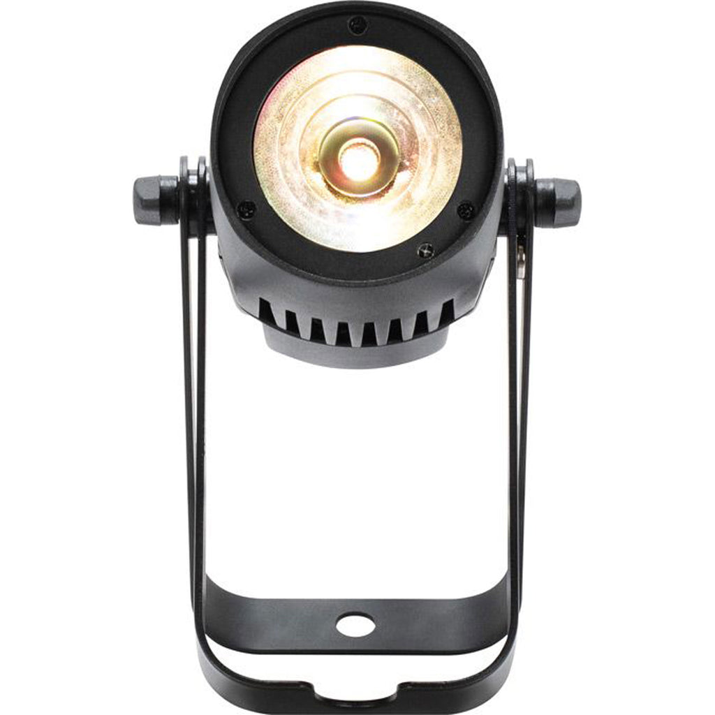 20W Quad-color (RGBL) LED Pinspot Fixture with Onboard Color Changing, Macros, Variable White Temperature, and DMX/RDM Compliancy