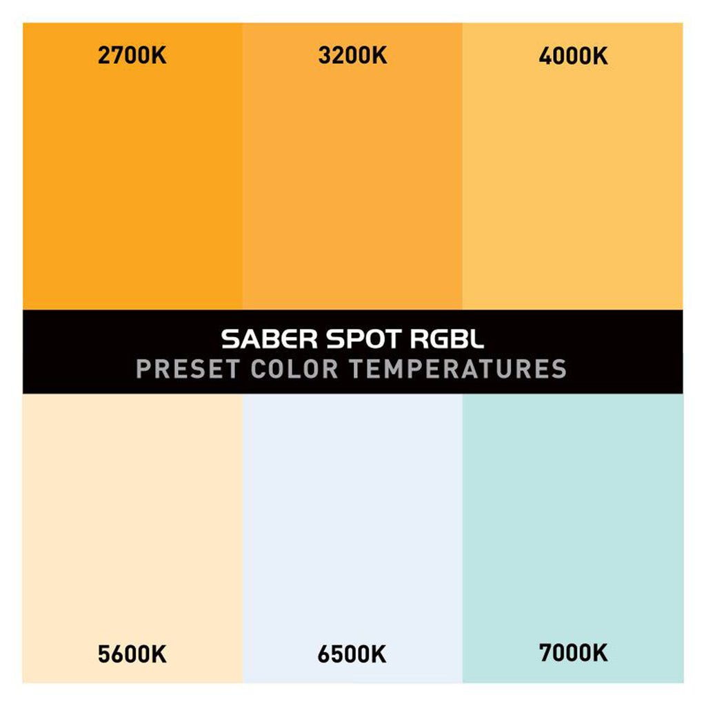 - 6 White Color Temperature Settings: 2700K, 3200K, 4000K, 5600K, 6500K & 7000K