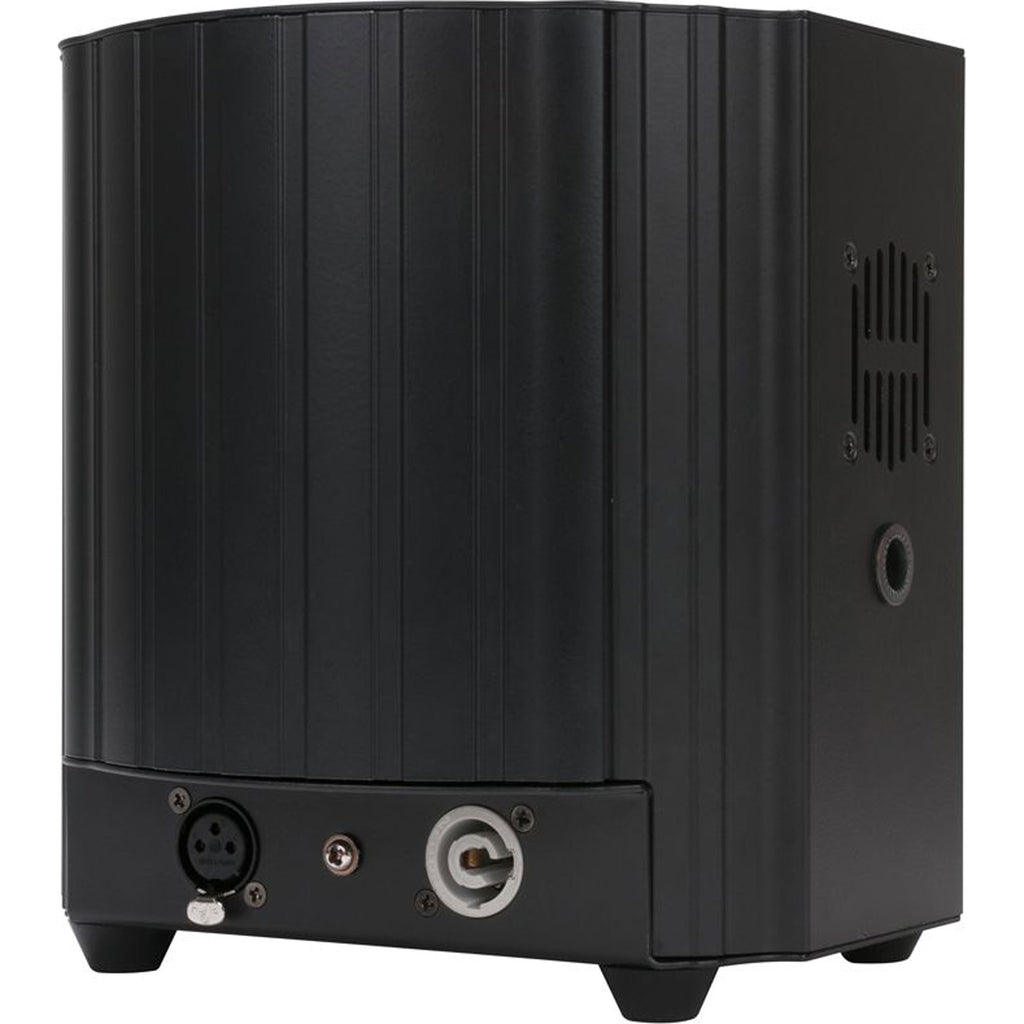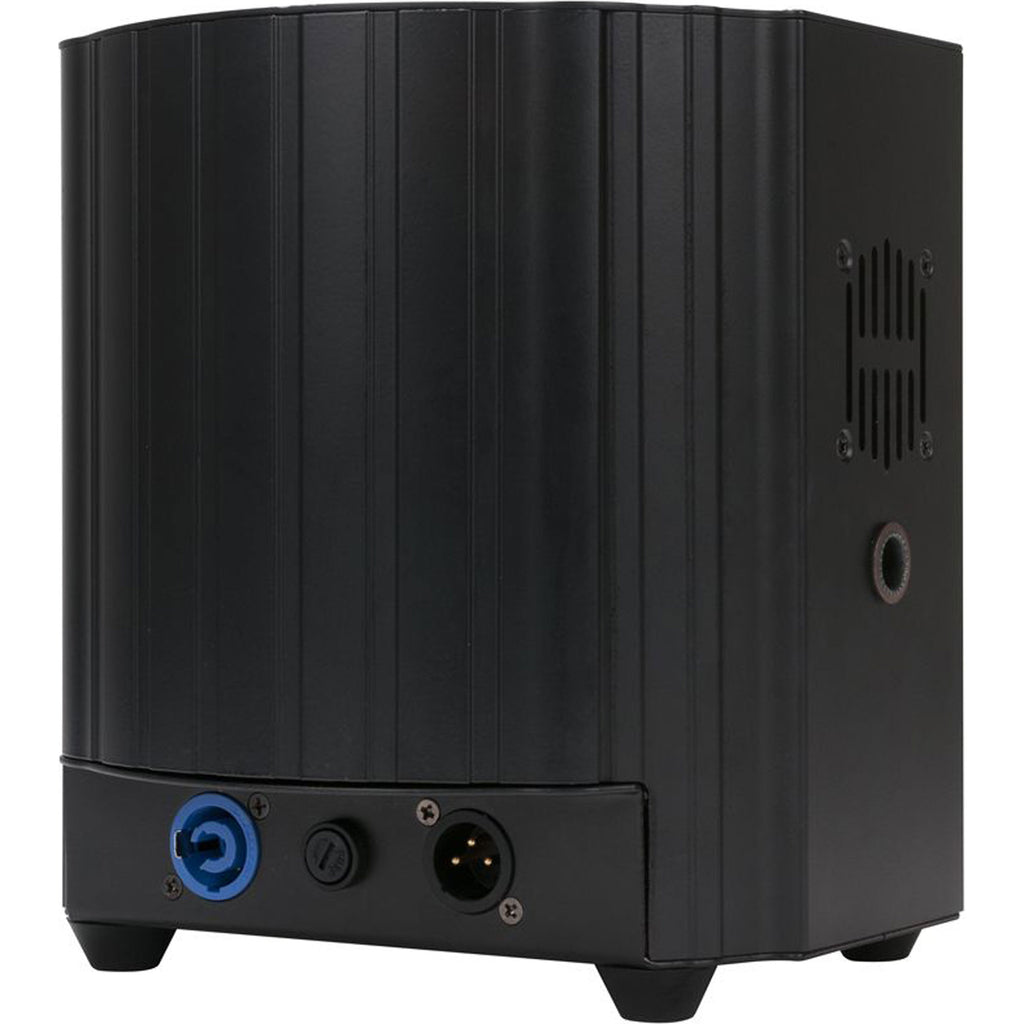 The UV COB Cannon has 3 operational modes (sound active, manual or DMX), has 3 DMX operational modes, 5 selectable dim curves, a 4-Button DMX Display and is flicker free for film and television. This fixture is DMX linkable via 3-pin DMX, and is power linkable via PowerCon connections. The light source is a 100-Watt COB (Chip On Board) UV LED engine.