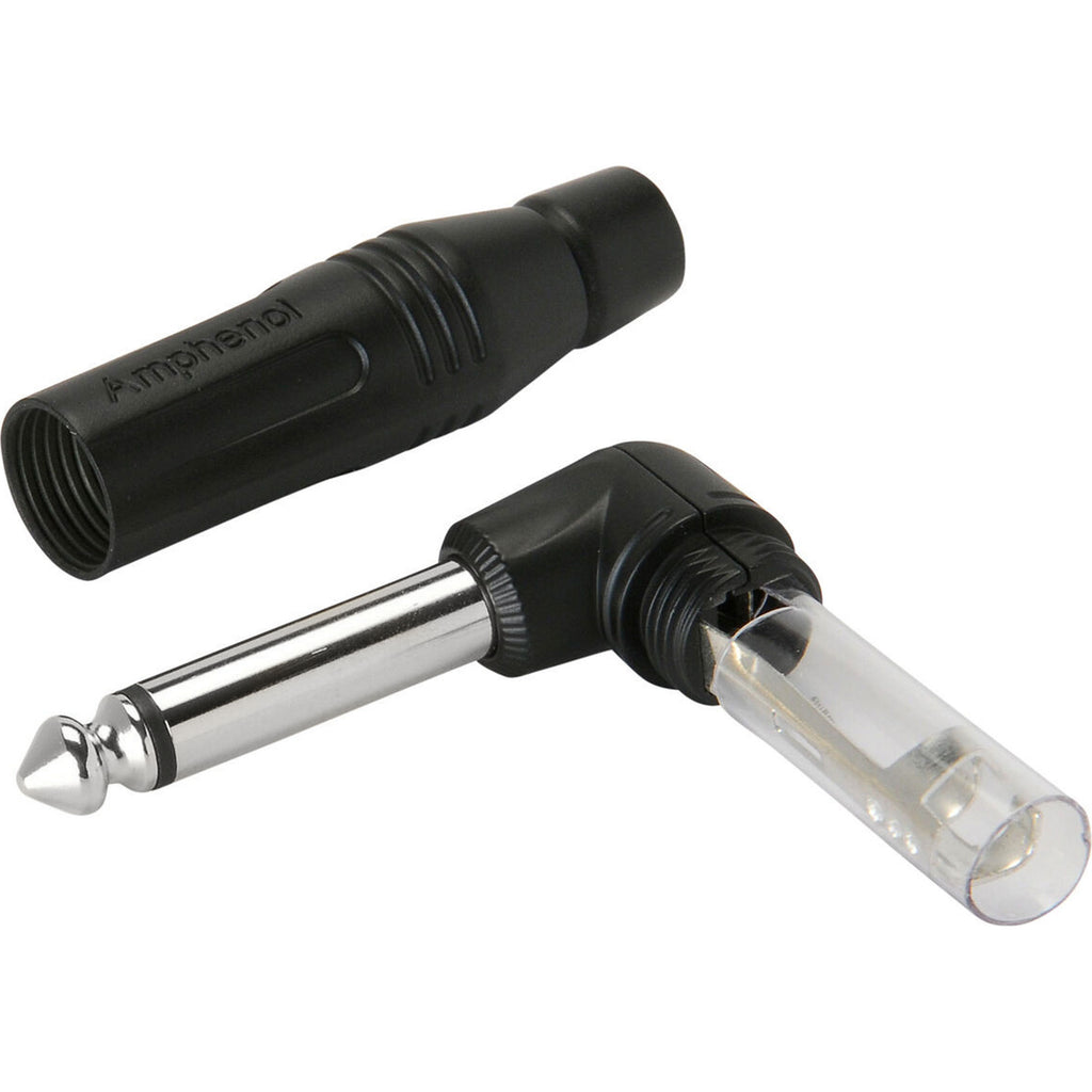 Amphenol ACPM-RB Professional Right-Angle 1/4" TS Mono Phone Plug (Black/Silver, 50 Pack)