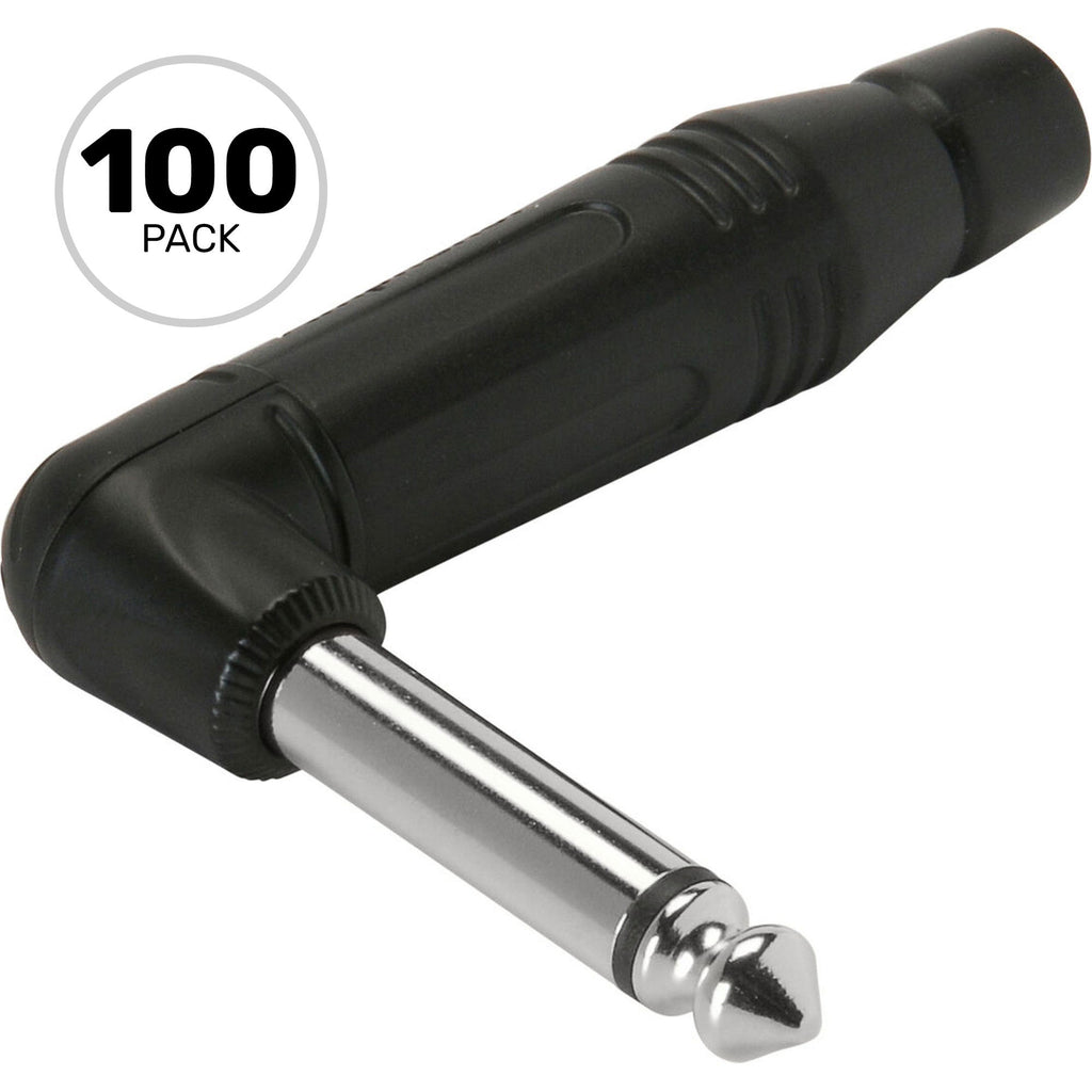 M Series Musician Range Professional Right-Angle 1/4" TS Mono Phone Cable Mount Plug with Diecast Shell - Black/Silver - Full Box of 100 Connectors