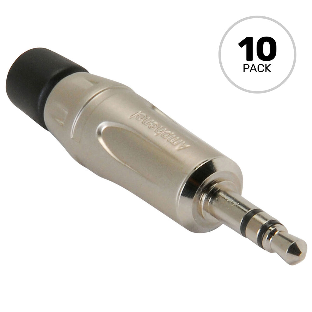 Amphenol KS3P 3.5mm TRS Stereo Mini Plug Cable Connector (Nickel/Silver, 10 Pack)