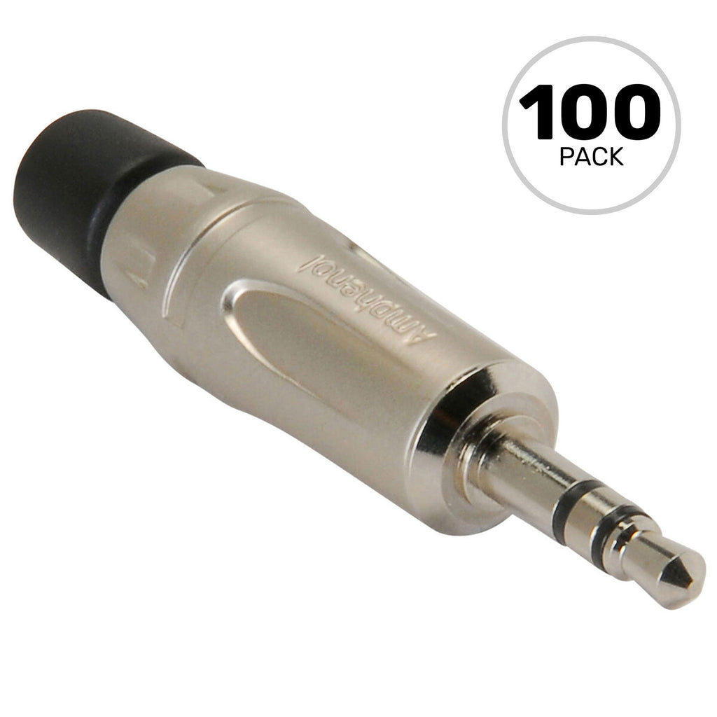 Cable Mount 3.5mm TRS Stereo Mini Plug Connector - Satin Nickel Shell with Silver Conductors - Full Box of 100 Connectors