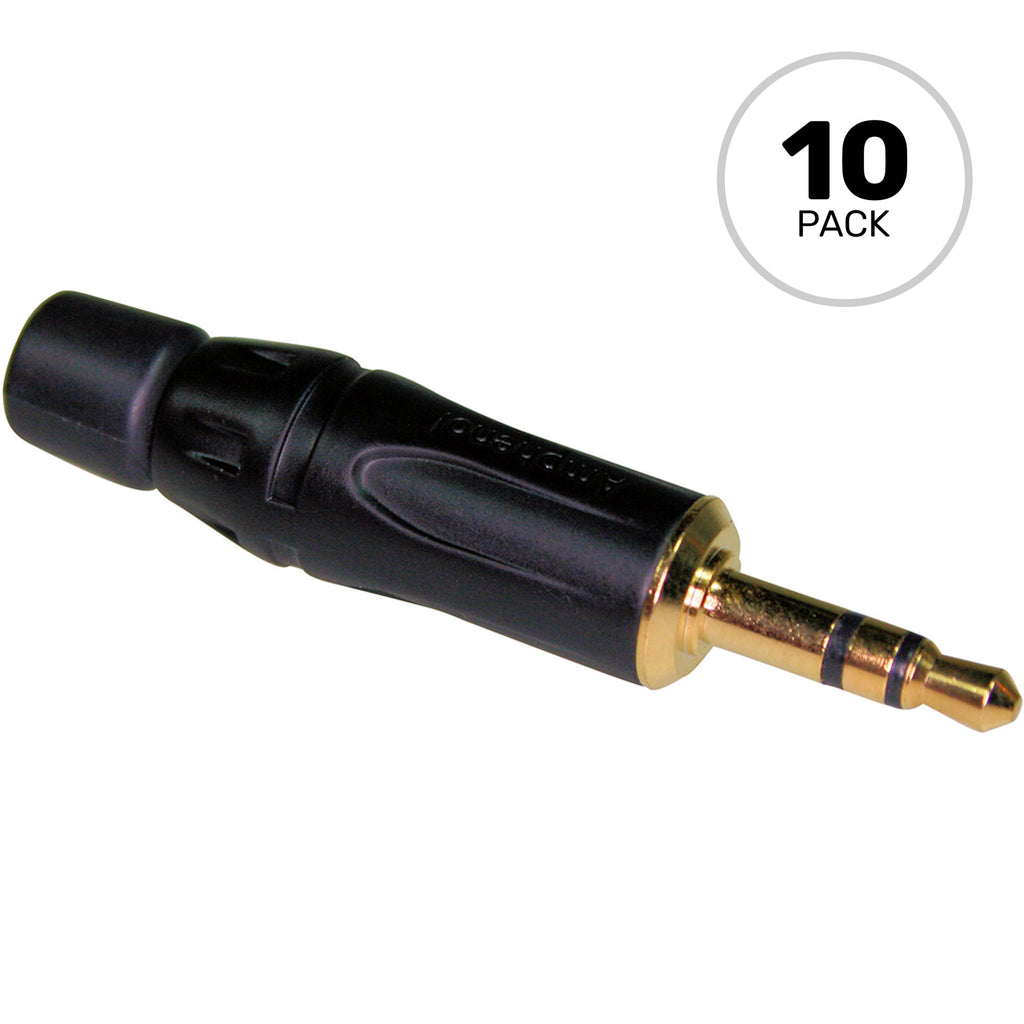 Amphenol KS3PB-AU 3.5mm TRS Stereo Mini Plug Cable Mount Connector (Black/Gold, 10 Pack)