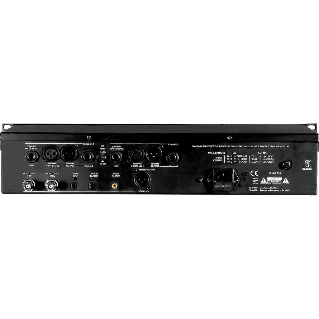 In addition to XLR and 1/4" analog outputs, the Digital MPA-II features a high quality A to D converter which offers digital connectivity on S/PDIF, ADAT, or AES/EBU outputs. A rotary control on the front panel allows selection of format and sample rates from 44.1 to 192 KHz and 16 bit dithering. There is also a push button for, and two wordclock jacks, allowing loop-through.