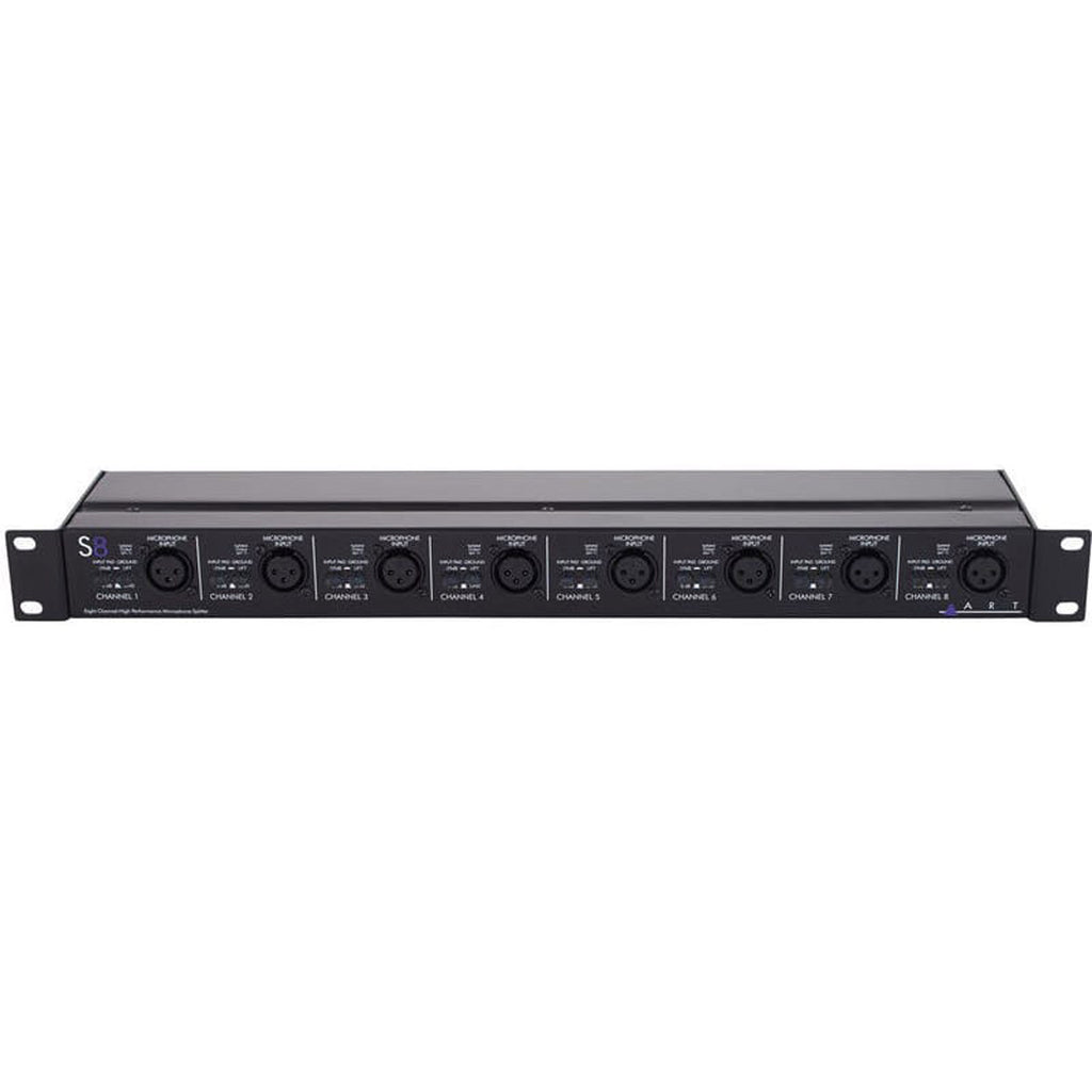 The ART S8 can be used to split eight balanced low impedance microphone signals into sixteen balanced low impedance microphone signals (eight pairs).