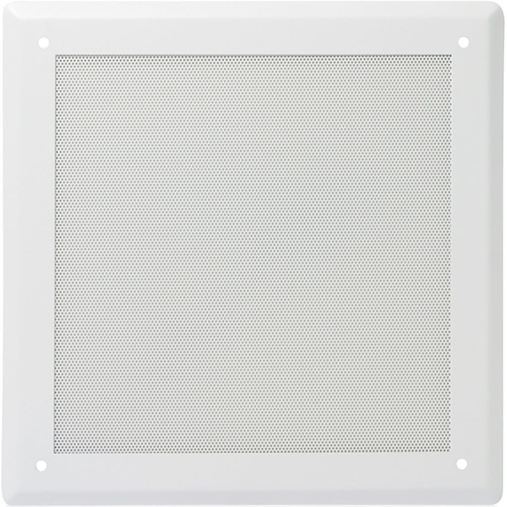 Model 170-8A. Popular ceiling baffle features a die-formed frame with shallow bevel and perforated screen. Separate loudspeaker mounting subplate (20-gauge CRS) provides extended "no leak" bass response. The design offers screw-mount installation with concealed loudspeaker mounting studs and accommodates standard 8" (203 mm) dia. loudspeakers. Unit is of two-piece CRS construction (18-gauge trim, 22-gauge perforated grille) with textured white epoxy finish.