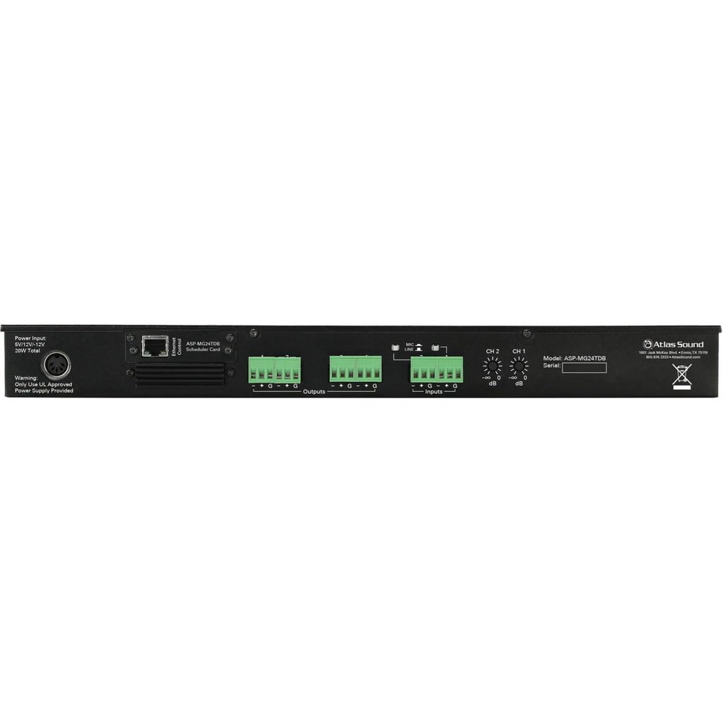 The ASP-MG24TDB advances sound masking control including time based level control to a whole new level while providing the secondary benefit of speaker processing for the most popular AtlasIED speaker systems.