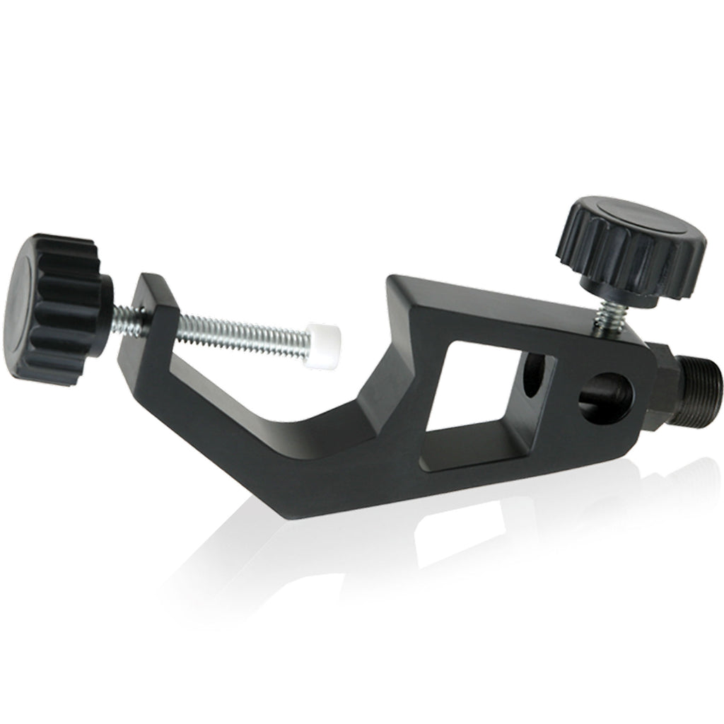 The MAC-1 patented, multi-use adapter/clamp secures microphones, horizontal booms, or accessories with standard 5/8"-27 threads. Versatile unit also clamp mounts to 5/8" and 7/8" diameter tubing or to free-standing instruments, keyboards, synthesizers, drum, and percussion instruments with tubing/mounting surface up to 1-1/2" in diameter. Unit is equipped with uniquely-engineered three-position, removable hex adapter which allows for convenient vertical or horizontal mounting. Clamp features nylon end cap to prevent marring of tube/surface finish. Fabricated from high-strength extruded aluminum and finished in ebony epoxy. 3-1/2" high. (Net Weight: 6 oz.).