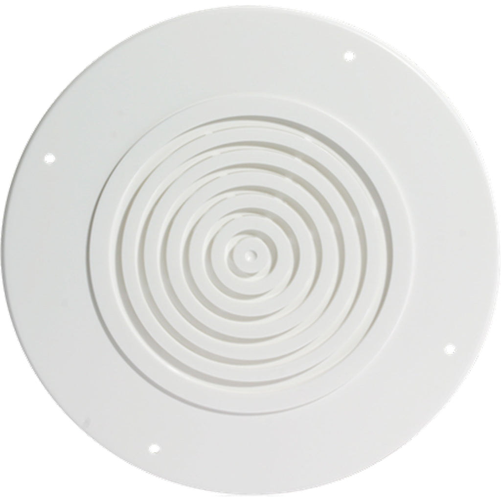 This high-impact, polystyrene plastic recessed grille has an attractive ceiling-white finish in round styling.