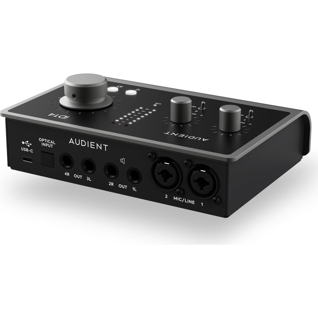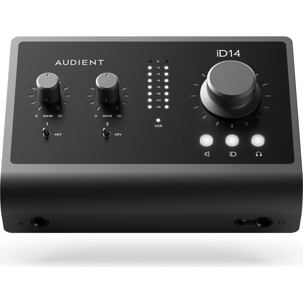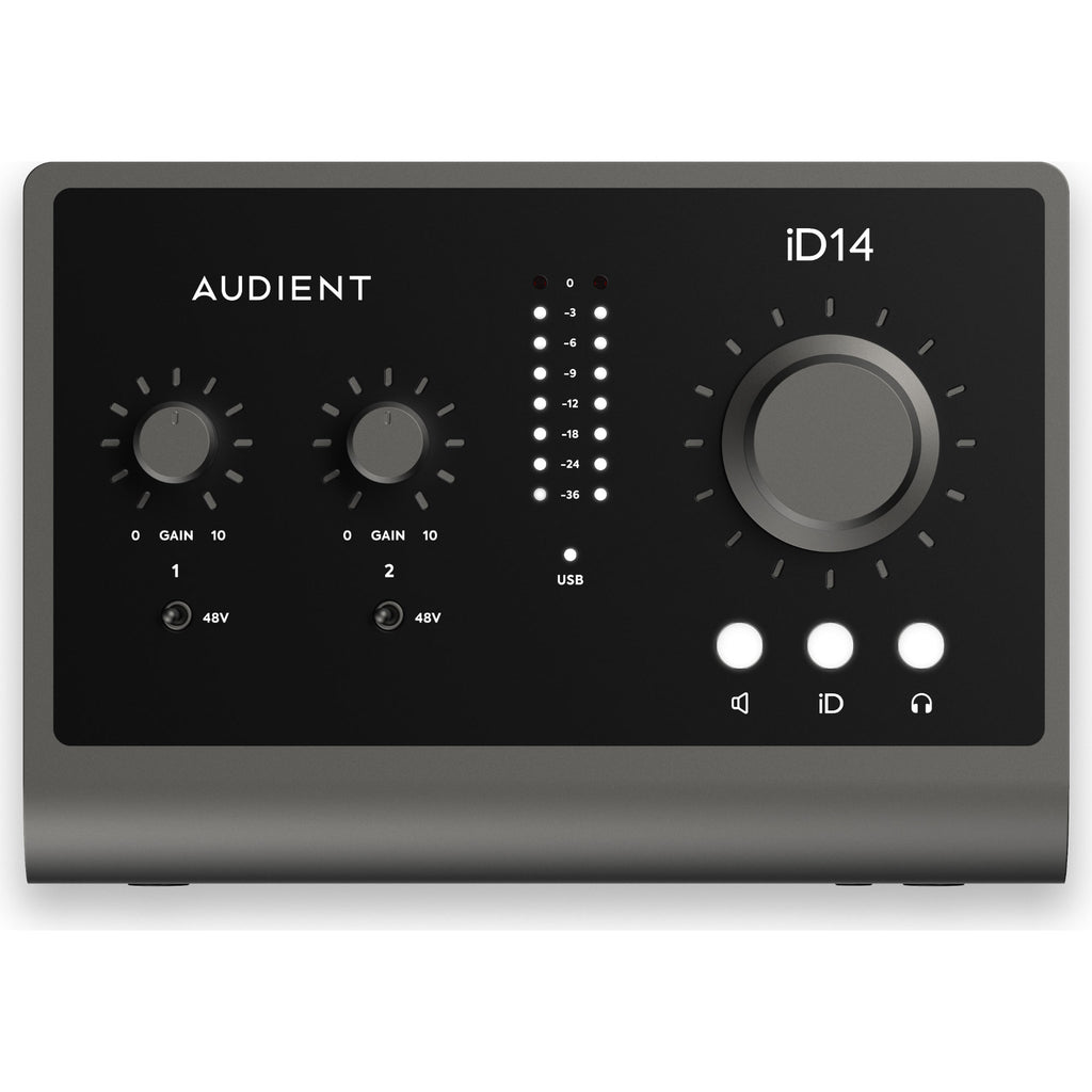 Meet iD14, the award winning audio interface built for making music like a pro. Featuring two fully analogue Audient Console Mic Preamps, Advanced 32-bit AD/DA Converters and the ability to expand via ADAT - iD14 packs everything you need to get studio quality recordings into a small, easy to use desktop package.