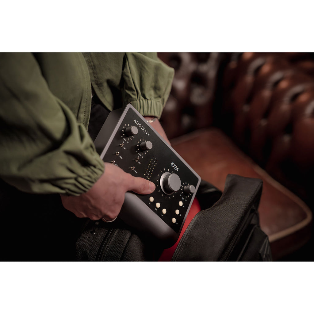 iD24 not only looks good but feels good too. Its all-metal design, hand-milled aluminium knobs and compact footprint make it perfect for everyday use, whether you're recording at home or on the go.