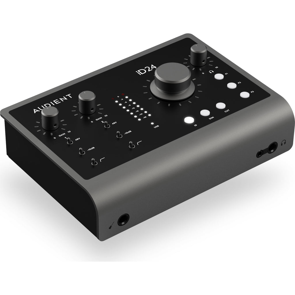 Introducing iD24, the audio interface made for producers and engineers. Featuring two Audient Console Mic Preamps, Advanced 32-bit AD/DA Converters and an intuitive layout, iD24 effortlessly combines astonishing audio performance with ease of use. Add to that professional must have features like balanced inserts, ADAT expandability and customisable monitor control, iD24 makes getting studio quality results easier than ever.
