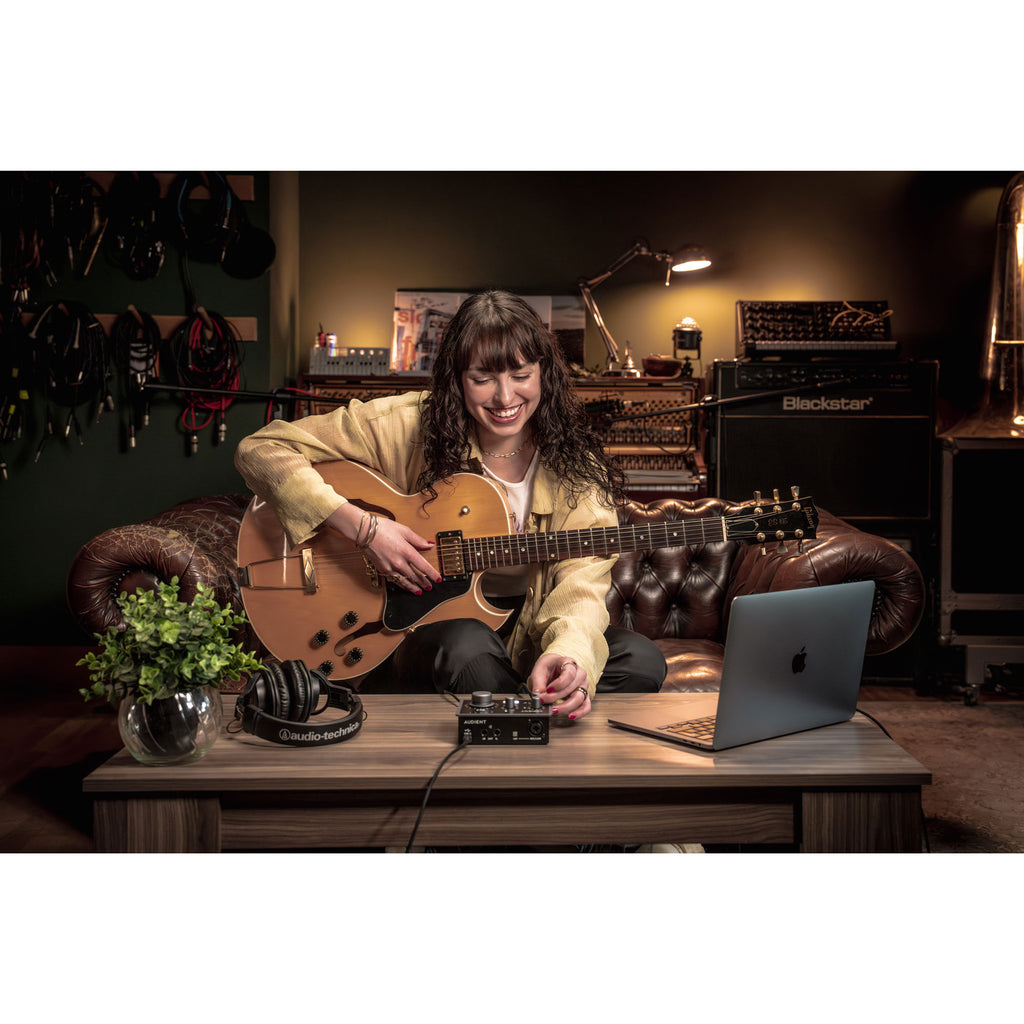 2-in/2-out USB-C Audio Interface with 1 Microphone Preamp, 1 JFET DI, Bus Power, 2 Headphone Outputs, and Software Bundle - macOS/Win/iOS
