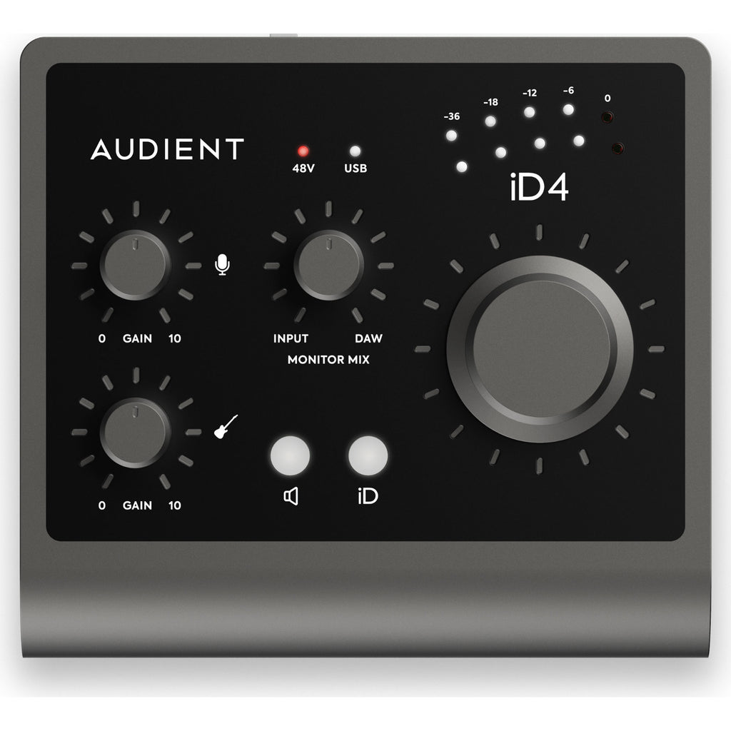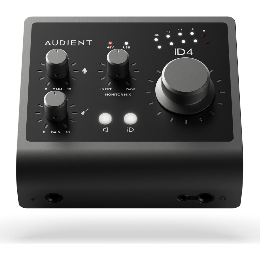Introducing iD4, our ultracompact but hugely powerful audio interface designed to let you make music like a pro. Though small in size iD4 is big on features - packing in one fully analogue Audient Console Mic Preamp, Advanced 32-bit AD/DA Converters, one JFET instrument output and Dual Headphone Outputs all in a 13 x 12cm footprint. Plus iD4 is completely bus powered, letting you capture studio quality recordings at home and on the road.