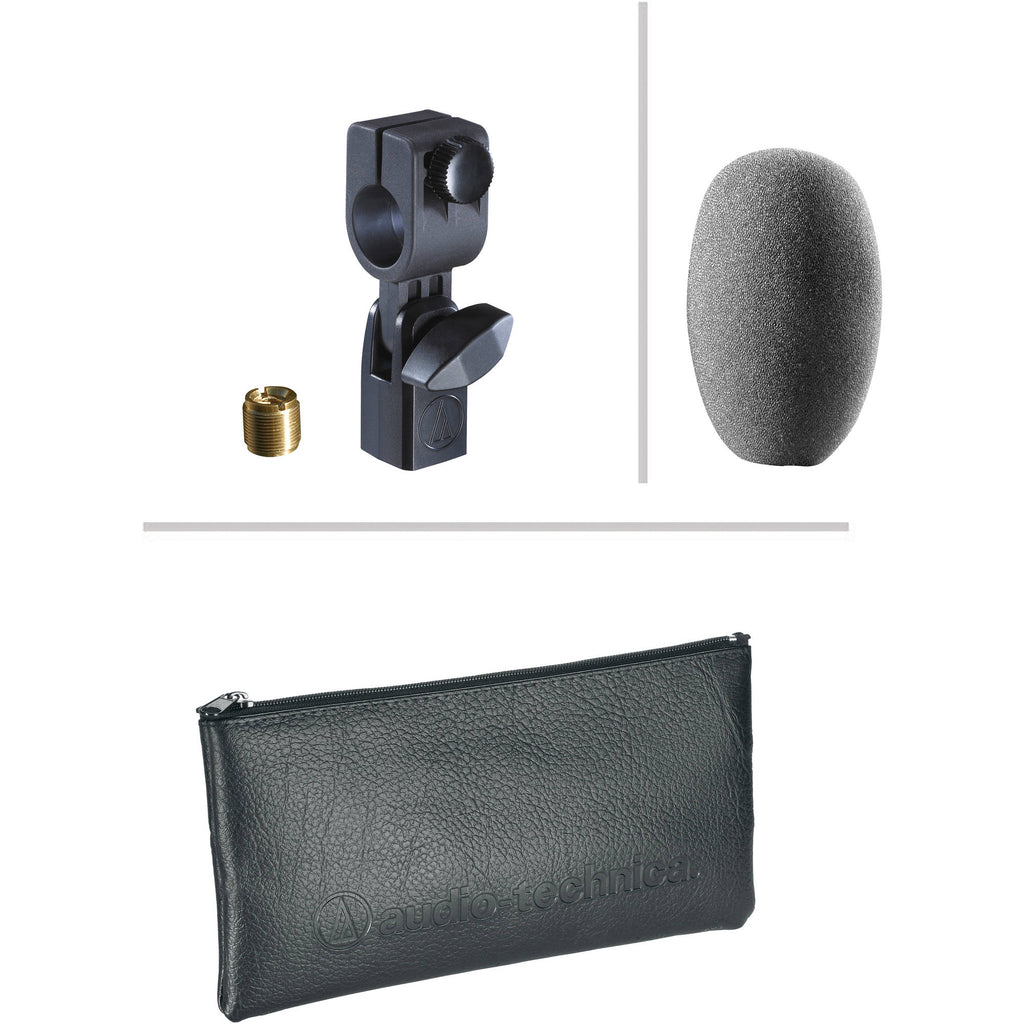 • ACCESSORIES FURNISHED: AT8471 isolation clamp for 5/8"-27 threaded stands; 5/8"-27 to 3/8"-16 threaded adapter; AT8136 windscreen; soft protective pouch