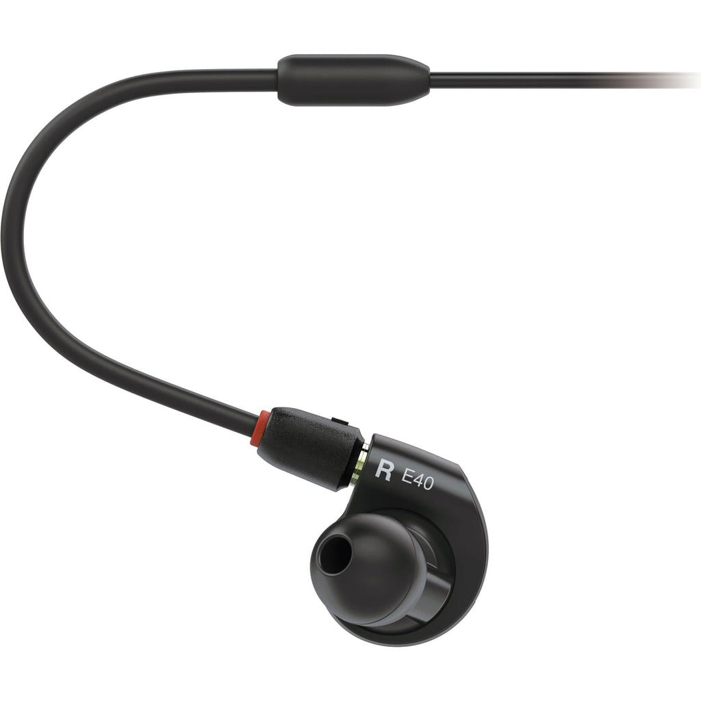 The proprietary dual phase push-pull driver design of the ATH-E40 professional in-ear monitor headphones provides improved fidelity and efficiency. These headphones deliver powerful bass along with balanced mid and high frequencies to convey the full emotion of the music from the stage to the street.