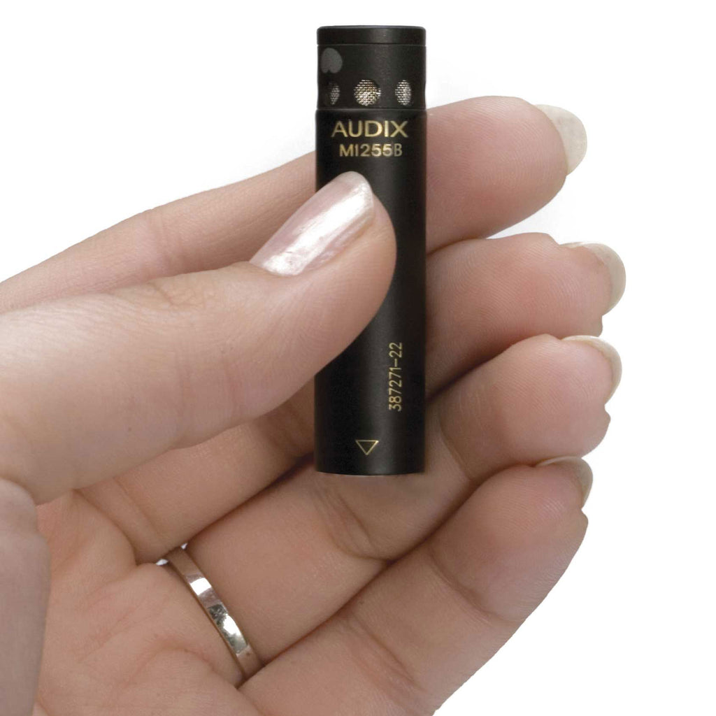 The M1255B is a miniaturized condenser microphone with a fully integrated preamp and detachable cable. This mic is designed with a very high sensitivity for distance miking. Applications include ceiling or table mount for conferences, overhead choir miking, location recording as well as audience or room miking.