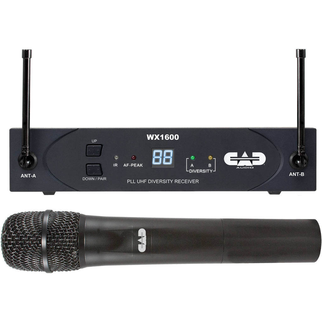 The WX1600 UHF 100-Channel Frequency Agile Handheld Wireless System from CAD Audio is for capturing audio. It is used in various venues for vocal and speech applications such as for singers, public speakers, stage and theater performances and more. It features a frequency response of 40Hz to 15kHz and a dynamic range of 109dB. This handheld system features 100-channel UHF frequency agile reception and offers connectivity with a minimal of multipath interference.