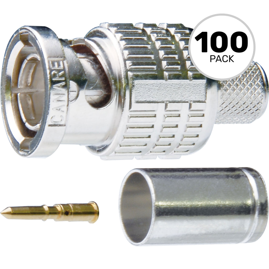 75 Ohm Crimp-Style BNC Connector, Straight Plug for V-4CFB and L-4CFB Cable - Full Box of 100 Connectors