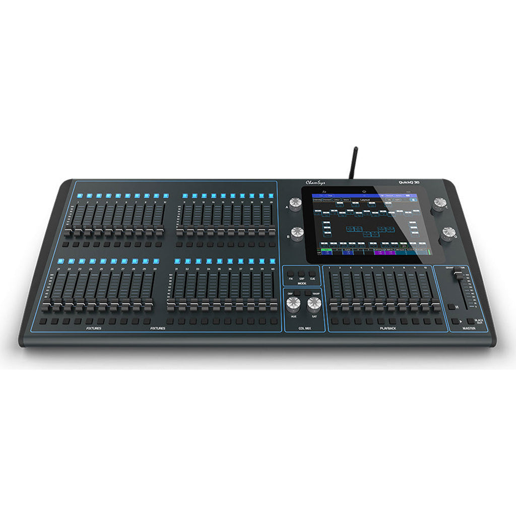 The QuickQ 30 is part of ChamSys QuickQ range of user friendly and affordable lighting control consoles. The QuickQ 30 is the perfect choice console for control of dimmer, LED colour mixing and moving light fixtures. The console features a large 9.7 inch touch screen utilising a smart phone like interface for setup, programming and playback of your show.
