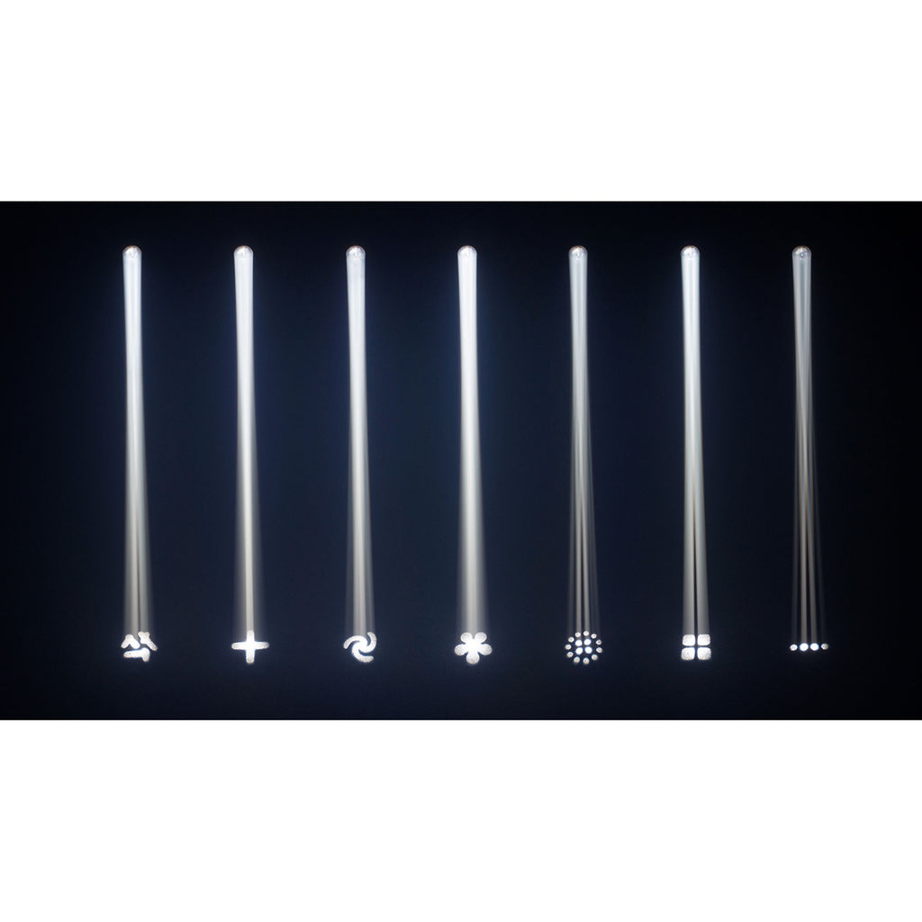 - Gobos: 17 + open (all aluminum), fixed, continuous scroll at variable speeds