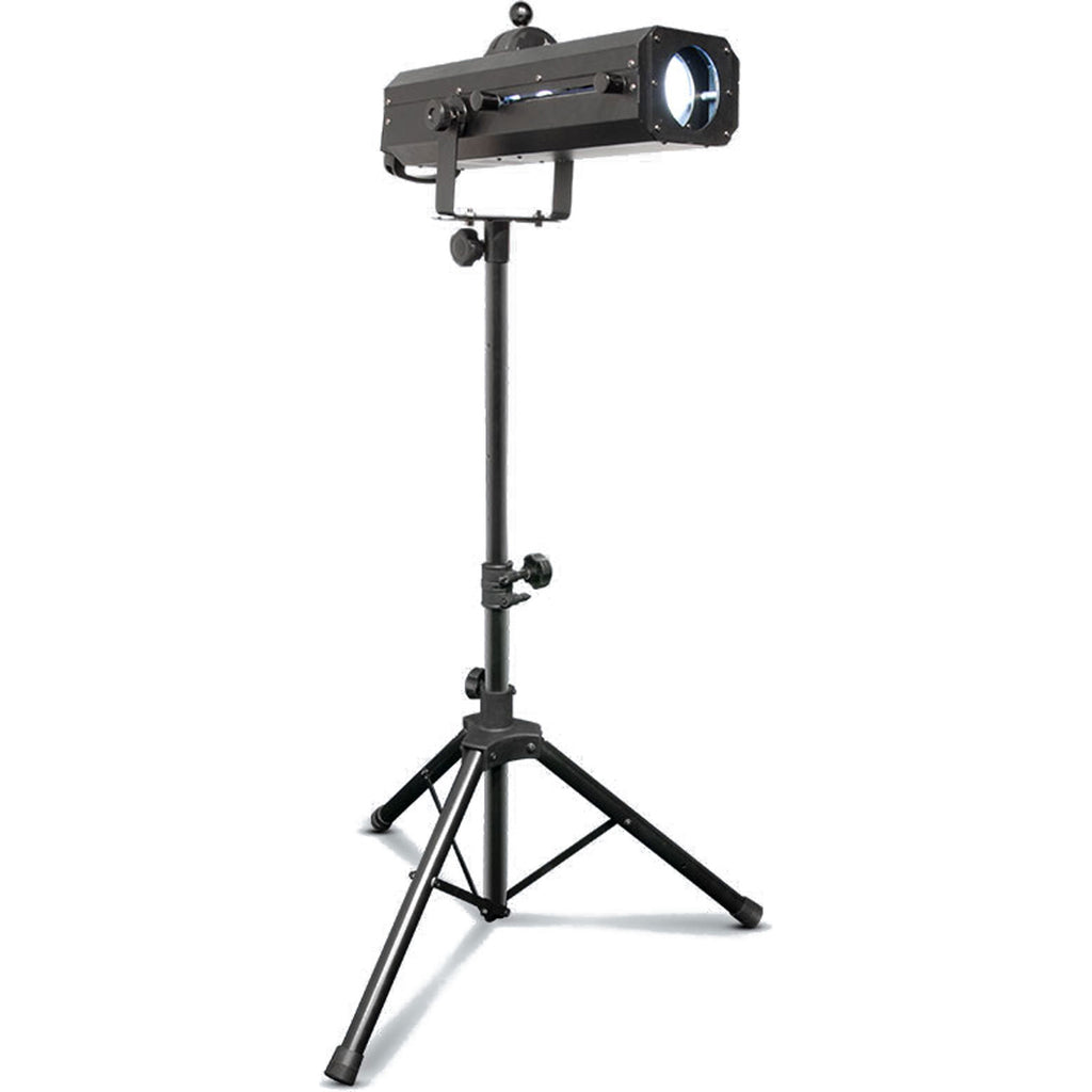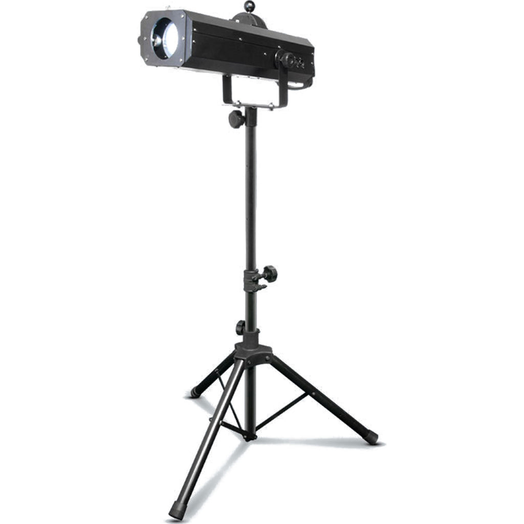 This portable, LED-powered followspot is equipped with a 75-watt white LED for a hardedge, focused beam. Easy to set up and tear down, LED Followspot 75ST comes with an included tripod. Extremely fast electronic strobe delivers silent operation with no moving parts. Super smooth LED dimming makes professional fading a breeze, while a single gobo slot projects crisp patterns onto any surface.