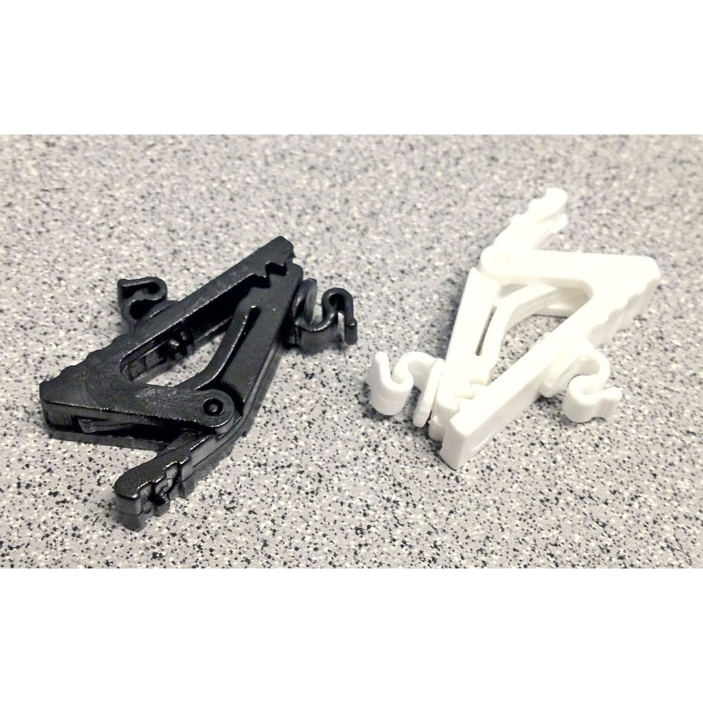 The standard tie clip, set includes one black and one white. This lightweight plastic clip is a good choice for ties and lapels. The white clip can be colored with a felt pen if a custom color match is necessary.
