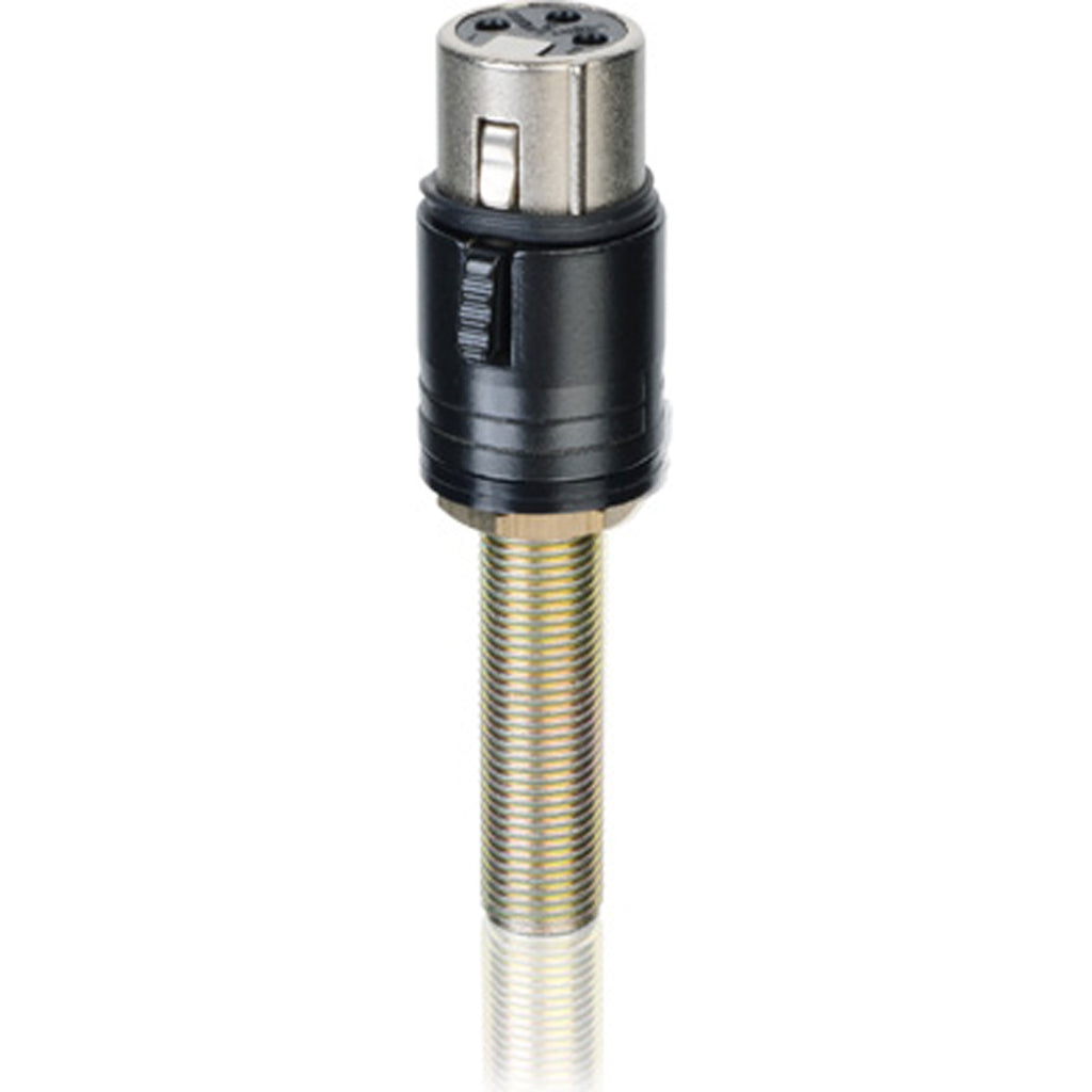 The Countryman A4CDM Desk Mount is specifically designed for the ISOMAX 4RF microphone. It consists of an XLR3F connector module which the microphone plugs into, and a metal bushing that can be mounted through a table top or podium surface. It both supports and connects the mic, and provides an attractive, unobtrusive mount with a very small footprint. This kind of mounting is practical only because of the ISOMAX 4RF's Active Vibration Isolation?other podium microphones require bulky shock mounts to avoid table vibration noises.