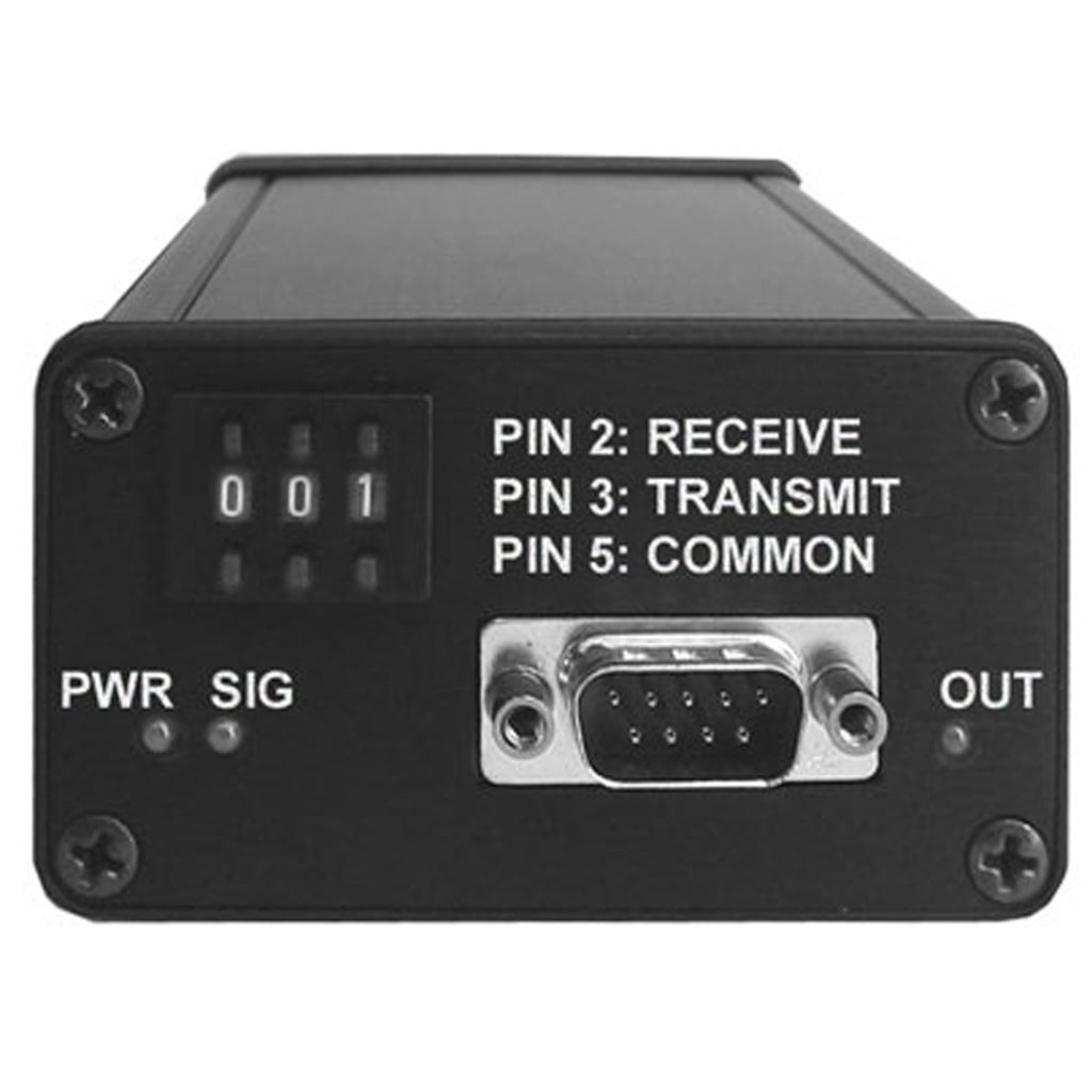 • Output connector: DB9 (male) Pin 2 = Receive, Pin 3 = Transmit, Pin 5 = signal ground.