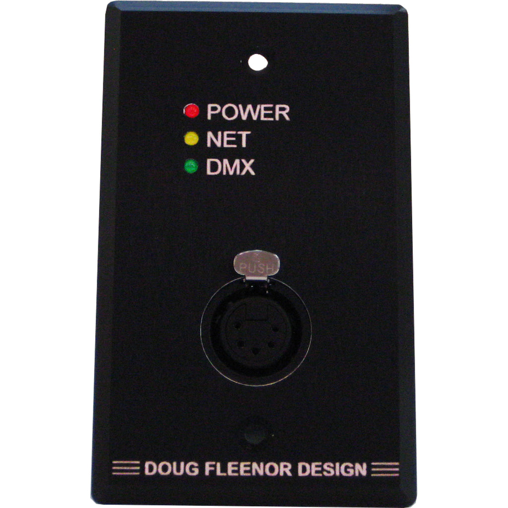 Node1 is a single gang wall mount Ethernet to DMX interface. It has zero boot time* and works with ArtNet (version 3 or prior), streaming ACN (aka sACN, ANSI E1.31, Net3), draft sACN (used by some ETC products), ShowNet (by Strand Lighting), and KiNet (by Color Kinetics). Configuration is done using a web-browser (Internet Explorer, Safari, etc.). Node1 uses Power over Ethernet (PoE) technology so no power supply is needed at the Node1 end. Node1 requires only a single Ethernet cable for power and signal.