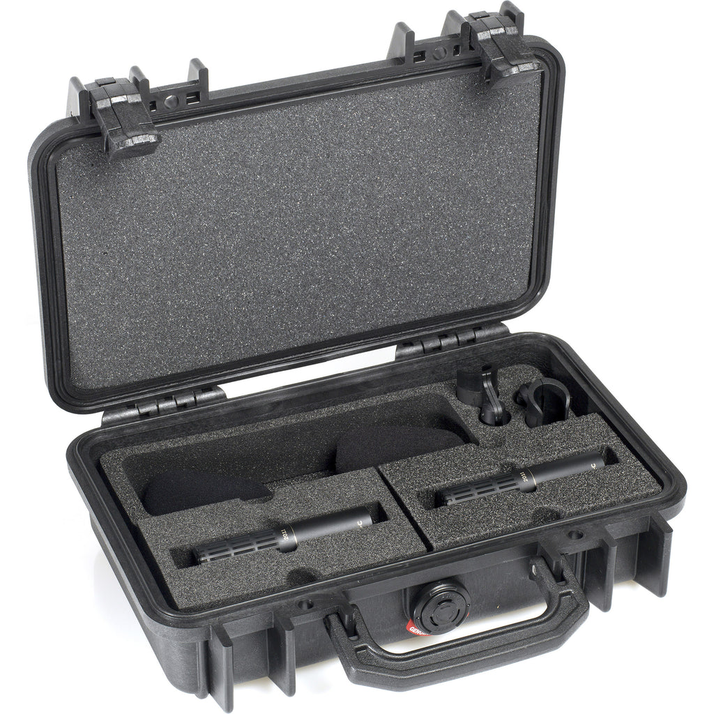 Two carefully matched 2011C cardioid microphones, sturdy PeliTM case, holders, grids and windscreens.
