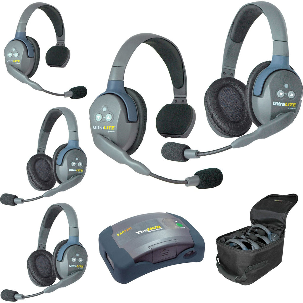 UltraLITE & HUB 5 Person Headset System with Batteries & Case (2 Single-Eared, 3 Dual-Eared)
