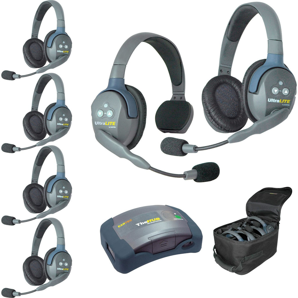 UltraLITE & HUB 6 Person Headset System with Batteries & Case (1 Single-Eared, 5 Dual-Eared)