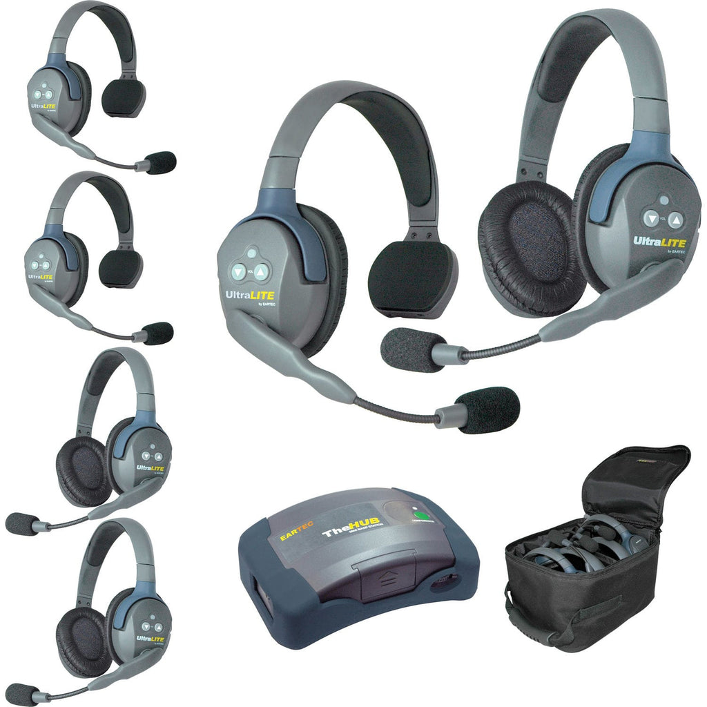 UltraLITE & HUB 6 Person Headset System with Batteries & Case (3 Single-Eared, 3 Dual-Eared)