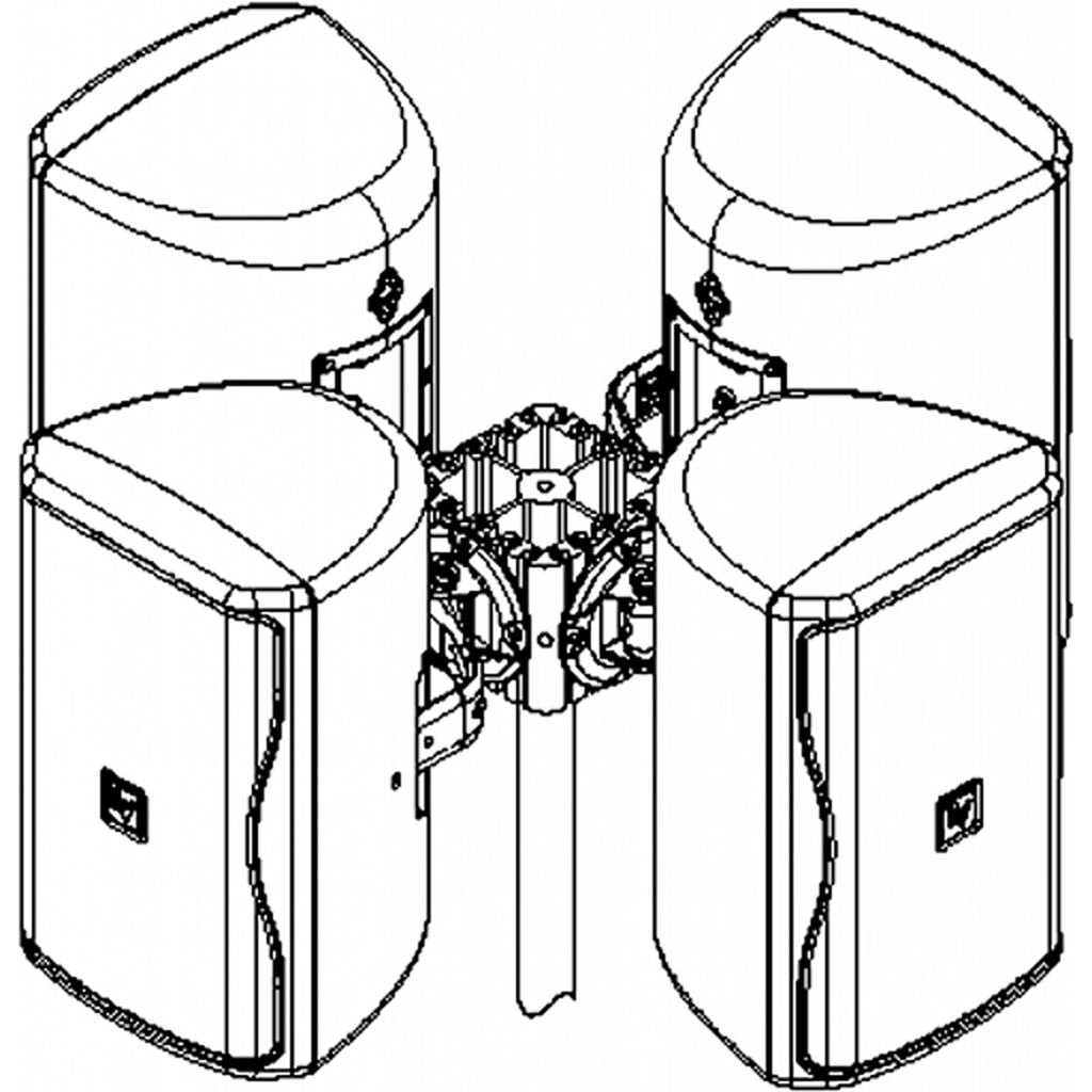 AB-ZE Array Bracket Assembly for EVID or ZX1I. It suspends these loudspeaker arrays by using a unique design that minimizes assembly time. It can be used with either two our four loudspeakers to create a 180 or 360 horizontal array.
