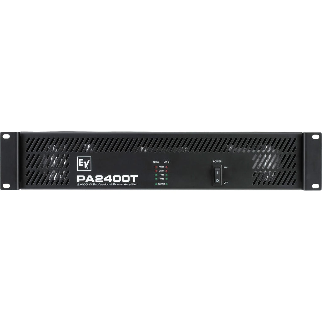 The Electro-Voice PA2400T is from the PA series of professional commercial audio amplifiers. The direct path airflow design reduces the heat buildup significantly and allows for more amplifier channels and output power in slim two rack space chassis. The audio performance of the PA2400T is superior and fulfills the requirements in many demanding long term applications from sound reinforcement, paging or life safety installations.