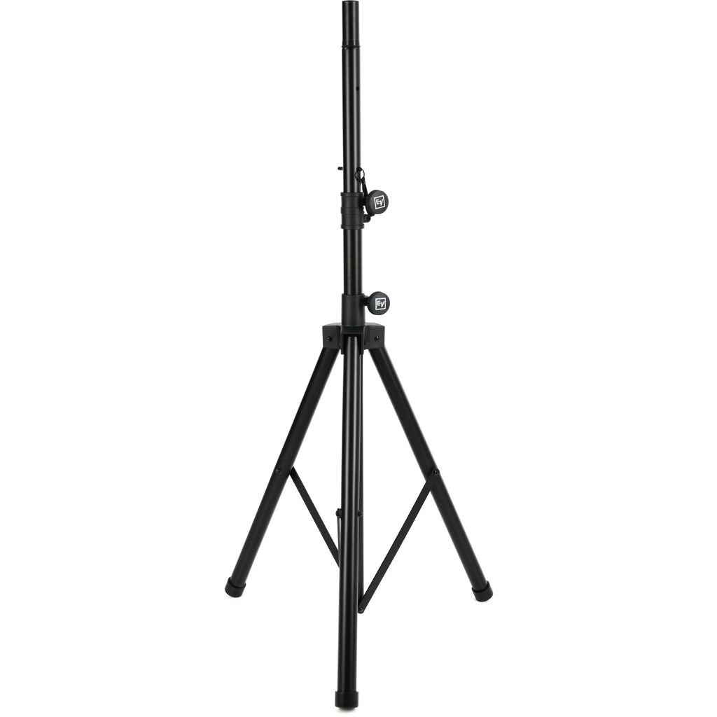 All-Aluminum Tripod Speaker Stand, Reversible Shaft with 34.9mm or 38mm (1-3/8 in to 1-1/2 in) Diameter Tubing, Height Adjustable from 1117.6mm to 1778mm (44 in to 70 in), Maximum Weight Capacity 68kg (150lbs), Black