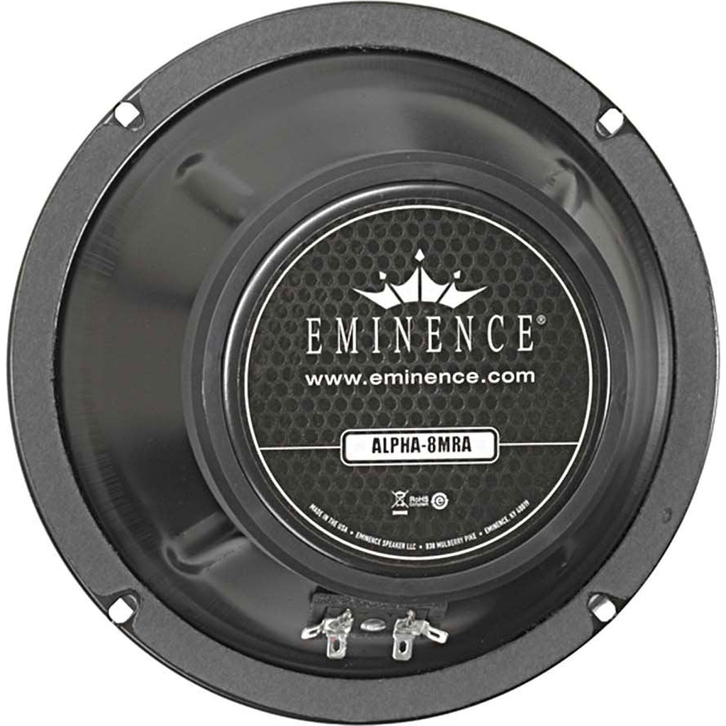 The sealed back Eminence Alpha-8MRA 8" midrange driver is ideal for building into bass enclosures to extend the midrange performance, creating an economical two-way speaker system. The Alpha-8MRA's closed-back basket does not require a separate enclosure, which makes installation very simple. Extremely high output capability combines with high power handling to create a reliable and useful pro speaker product.
