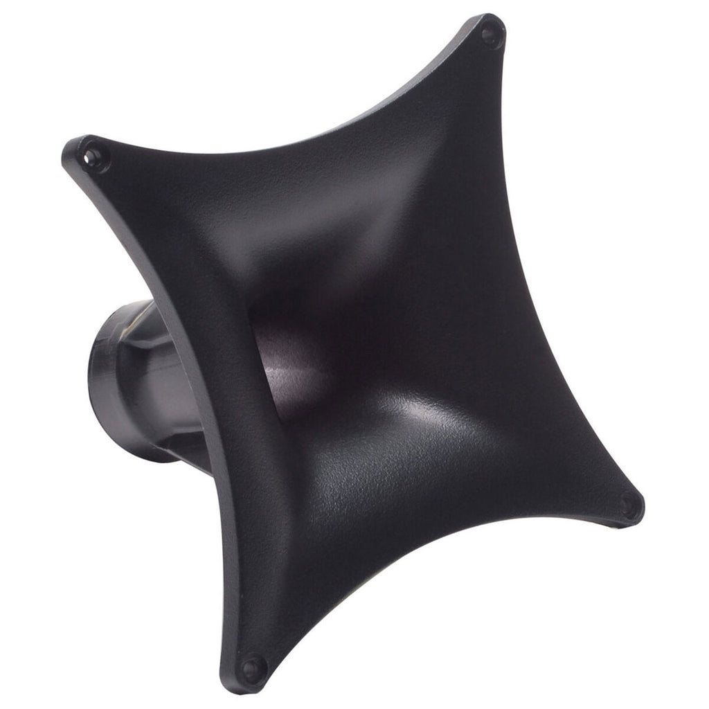 Compact exponentially flared horn for general HF duties. Excellent for bass guitar rigs! Unique flange shape permits extremely close driver spacing while maintaining excellent dispersion characteristics. Recommended for crossover points 1 kHz and higher. Rugged plastic construction. Standard 1-3/8"-18 TPI screw-on mounting.