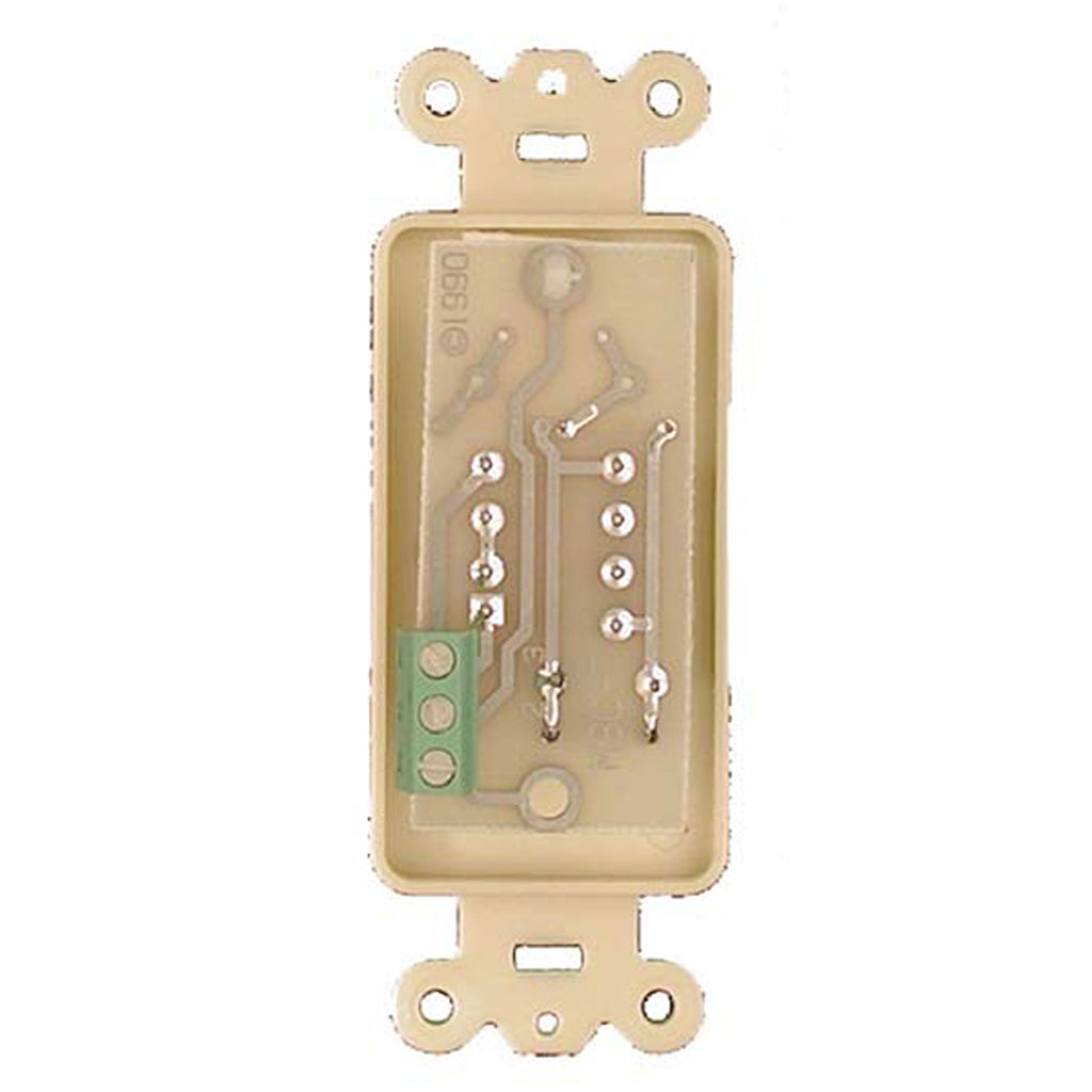 The MSC-U module contains a transformer isolated jack (600 ohm) for interfacing a tape recorder into an existing sound system for recording purposes. The MSC-U ouputs a balanced mono line level signal from a sound system for a tape recorder. The module mounts into a standard electrical box (not provided), and is finished off with a matching decora coverplate (see HPS1).