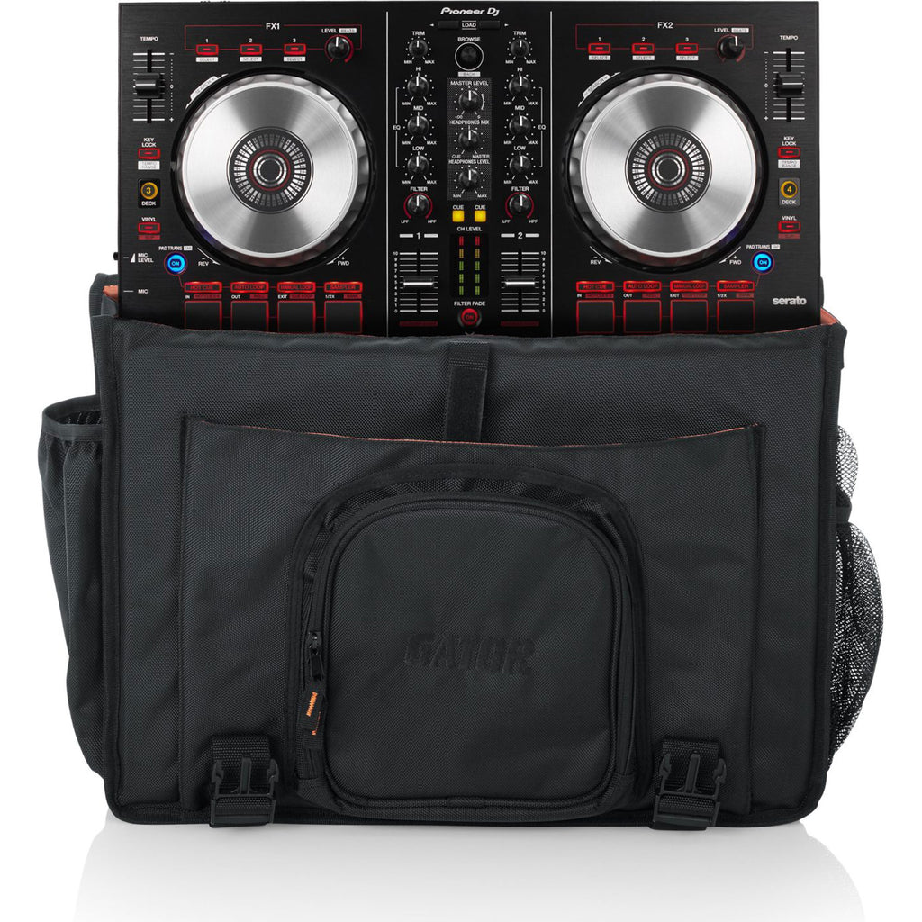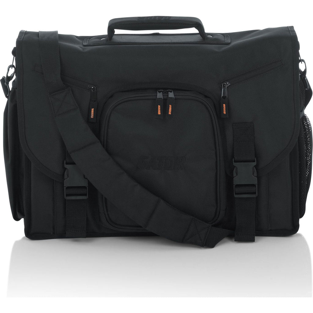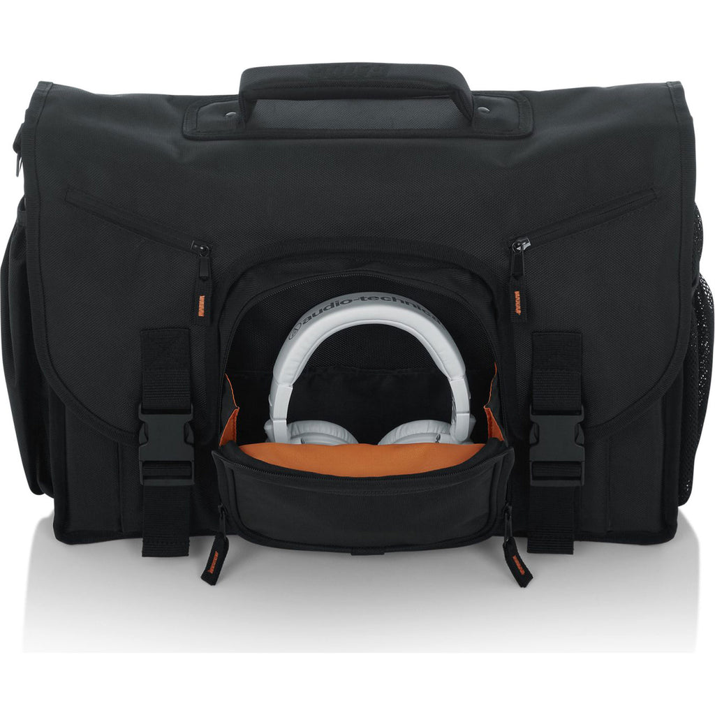 - Messenger style bag designed to hold laptop based DJ Midi controller, laptop, & headphones