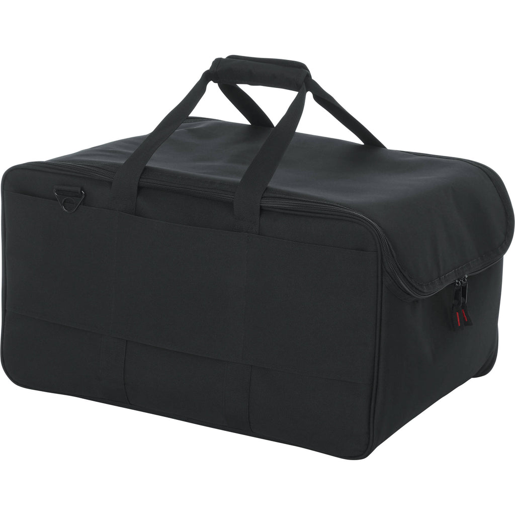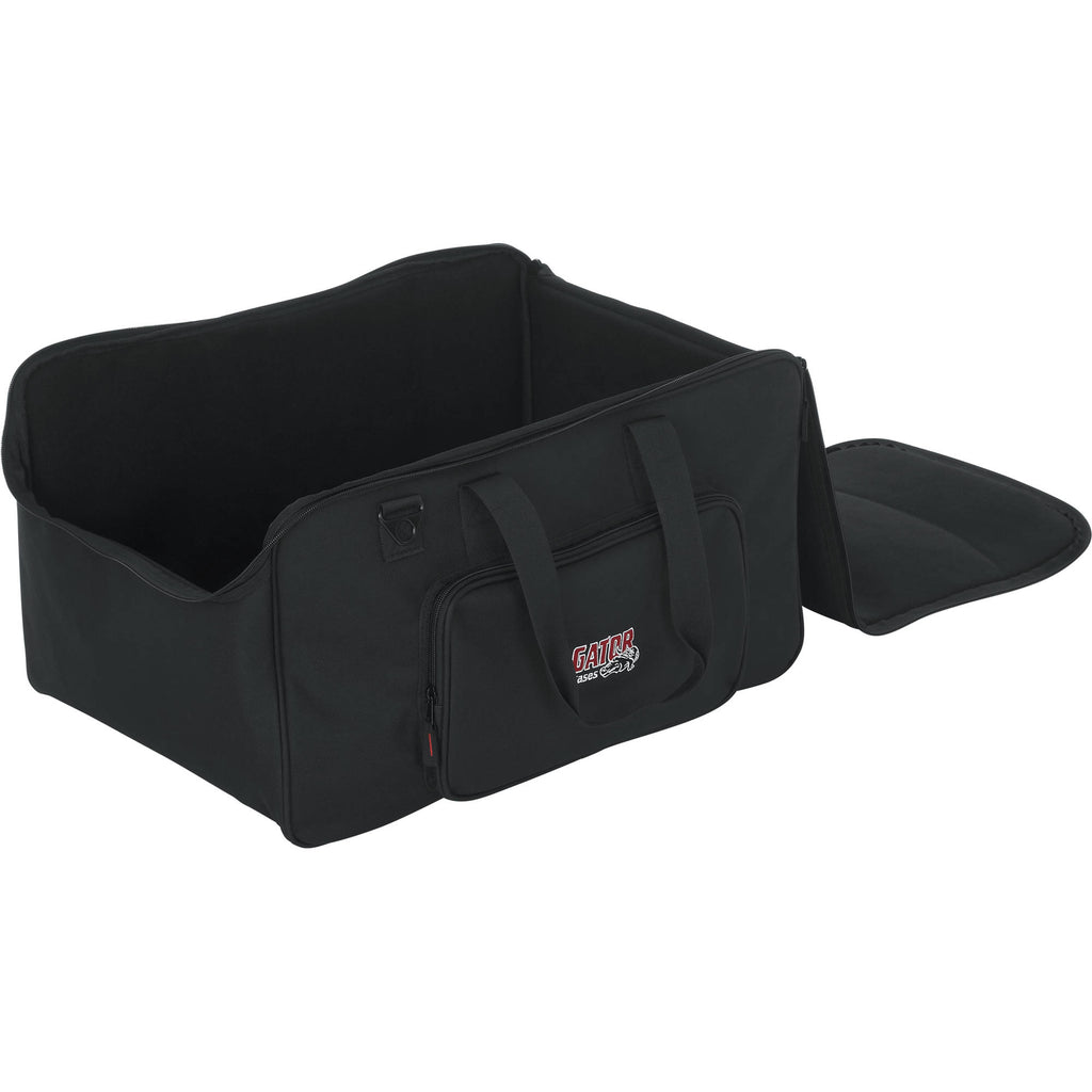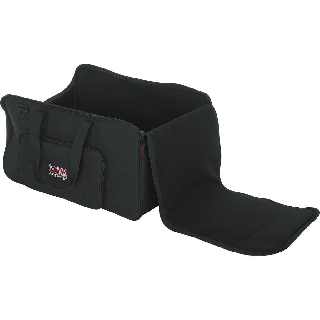Store, transport, and protect up to four LED PAR-style lights in the black 2212 LED PAR Lighting Tote Bag from Gator Cases. This tote-style bag features water-resistant, padded polyester construction, and a dual-zipper closure for easy access to your gear. Padded touch-fastening interior dividers help protect your PAR lights from damage. The front exterior of the bag has a zippered pocket for cables and assorted accessories. Wear it with the included shoulder strap. Carry the bag with the dual connecting top strap handles.