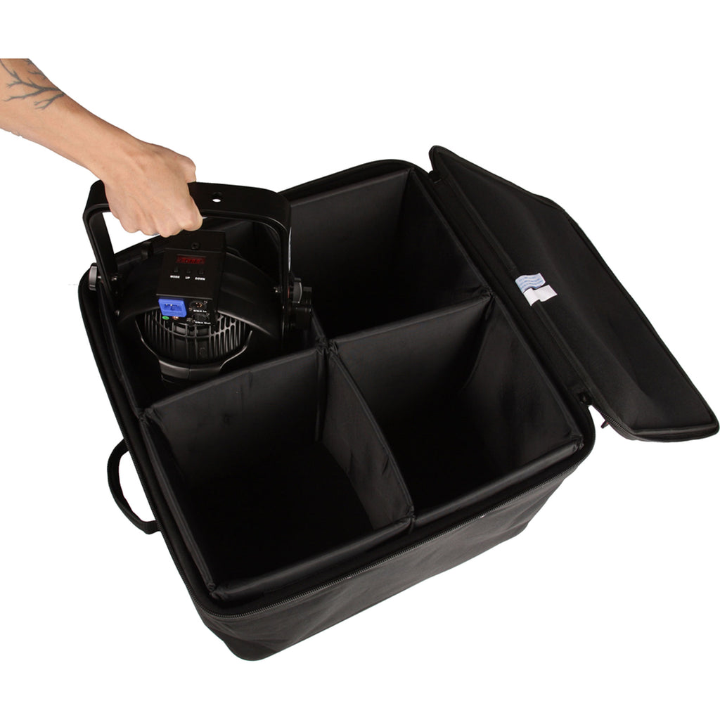 Par Can Light Case w/ Tow Handle, Wheels, & Removable hook & loop Dividers; Holds Four (4) Par 64 LED's