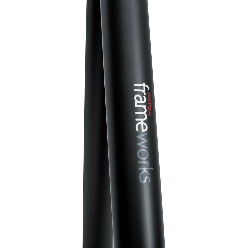The Frameworks Standard Tripod LCD/LED Stand from Gator Cases is a steel tripod stand with a standard VESA mount for compatibility with the mounting patterns of LCD/LED displays. The height of the stand can be adjusted between 50" to 73" and the stand can support up to 40 pounds. Each of the feet has a removable red safety trim. The stand also has a quick release for easy removal of the display.