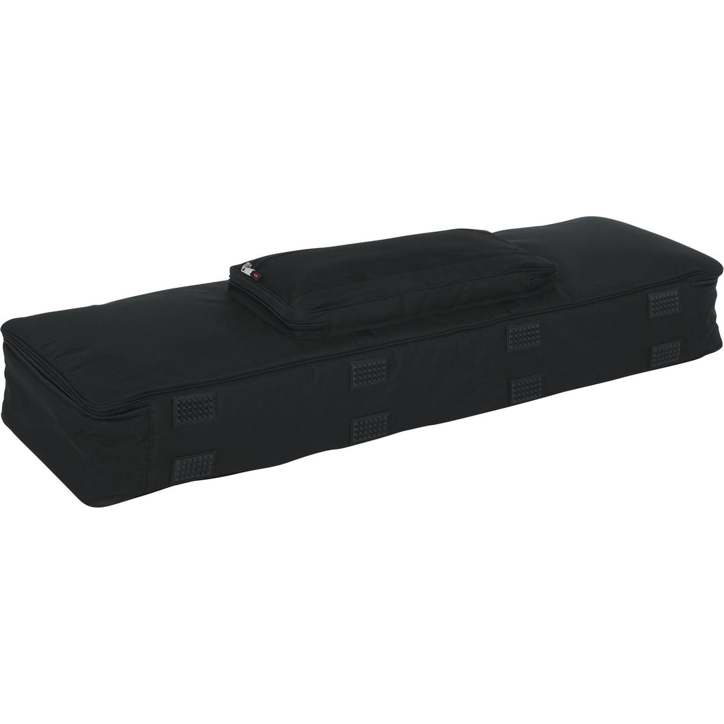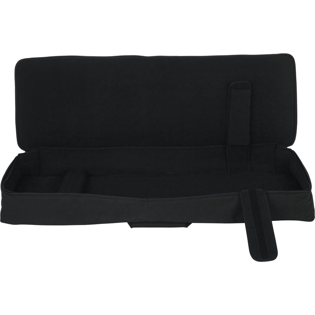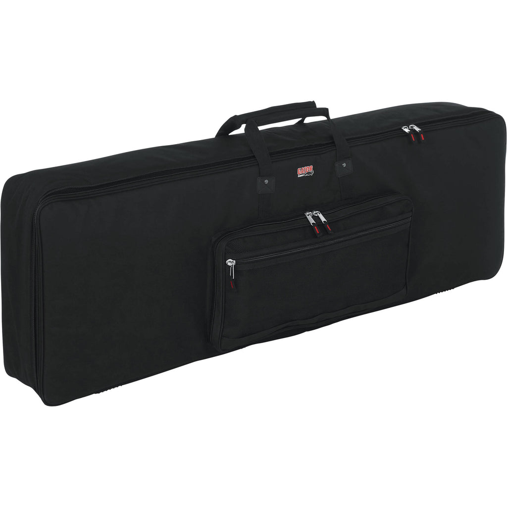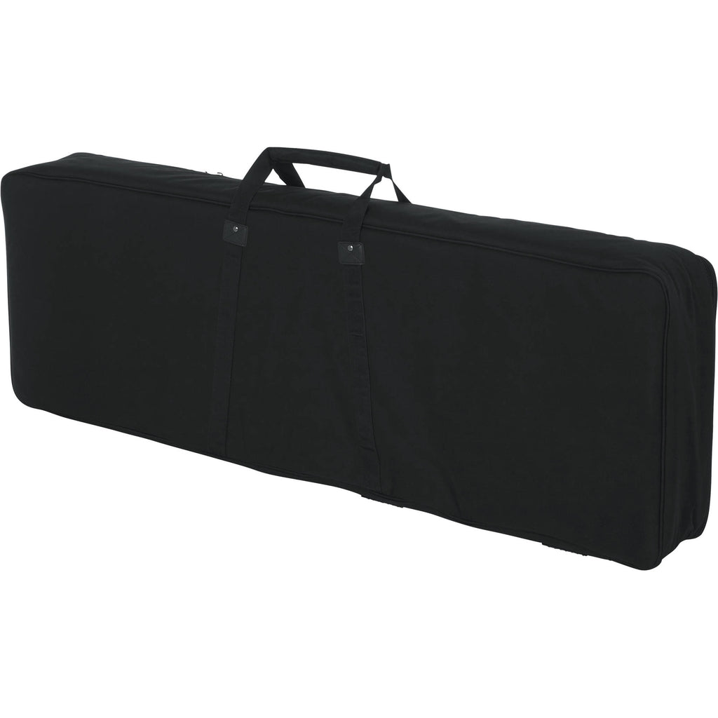 The Gator GKB-88 Keyboard Gig Bag is a 20mm padded 600 denier ballistic nylon keyboard case that fits standard profile 88-key keyboards, stage pianos and synthesizers. The case features Black chrome hardware, large zippers, padded secure straps and reinforced comfort carry handles for easy transport.